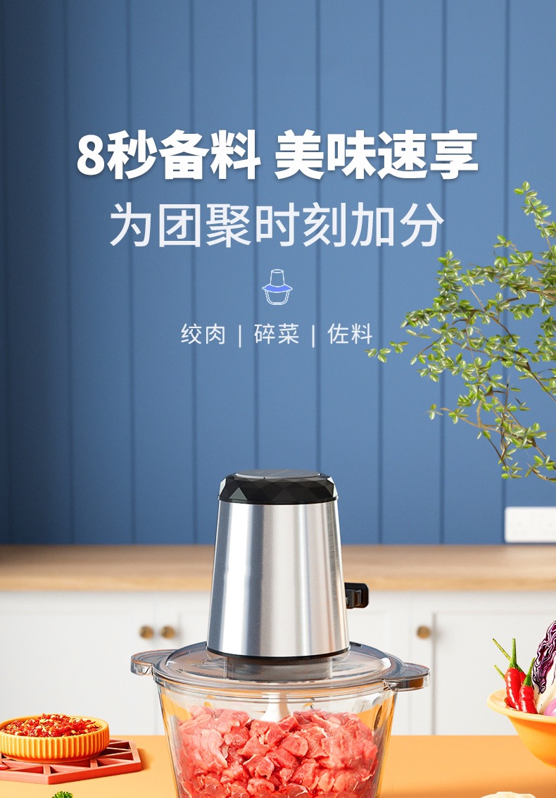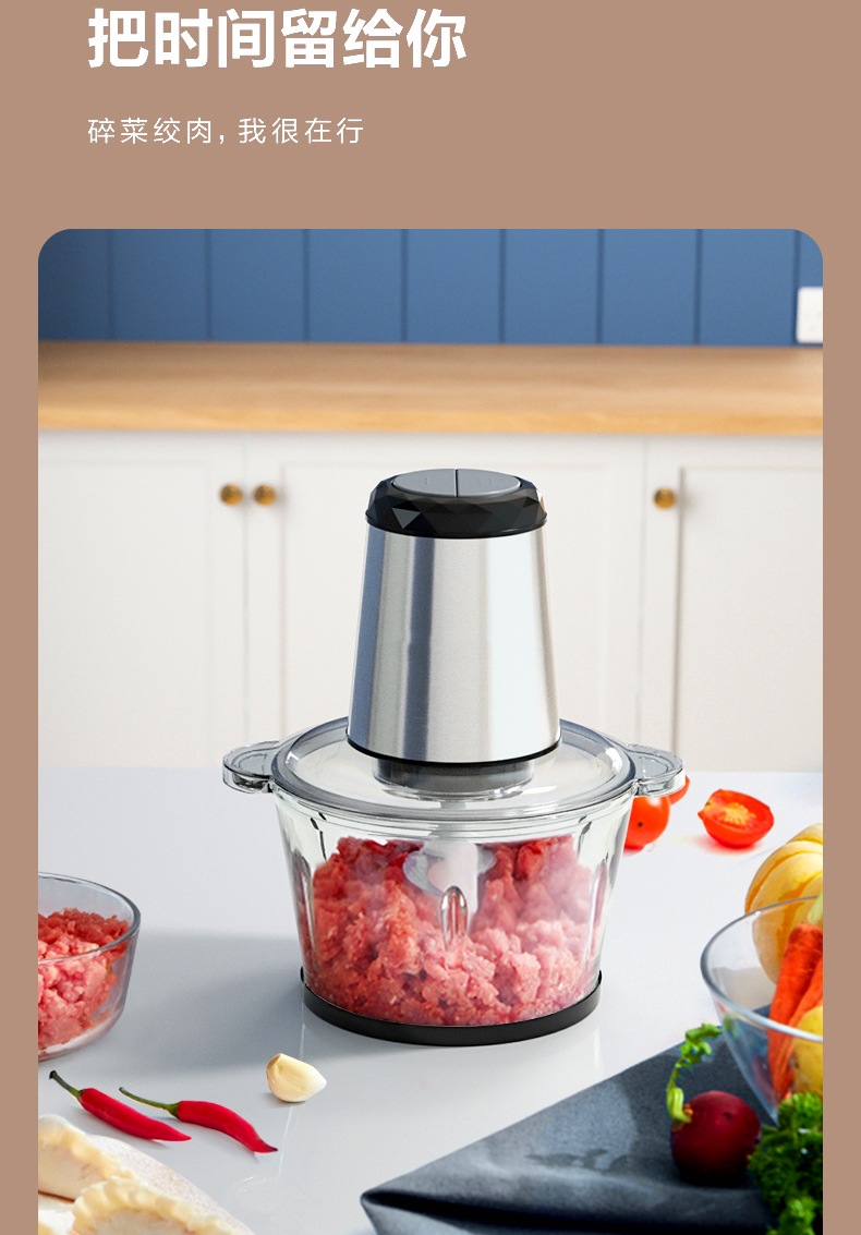 Máy Xay Thịt Gia Đình Tự Động Đa Năng Băm Thịt Băm Ớt Nấu Bát Thủy Tinh Băm Rau Trộn Tặng Sỉ