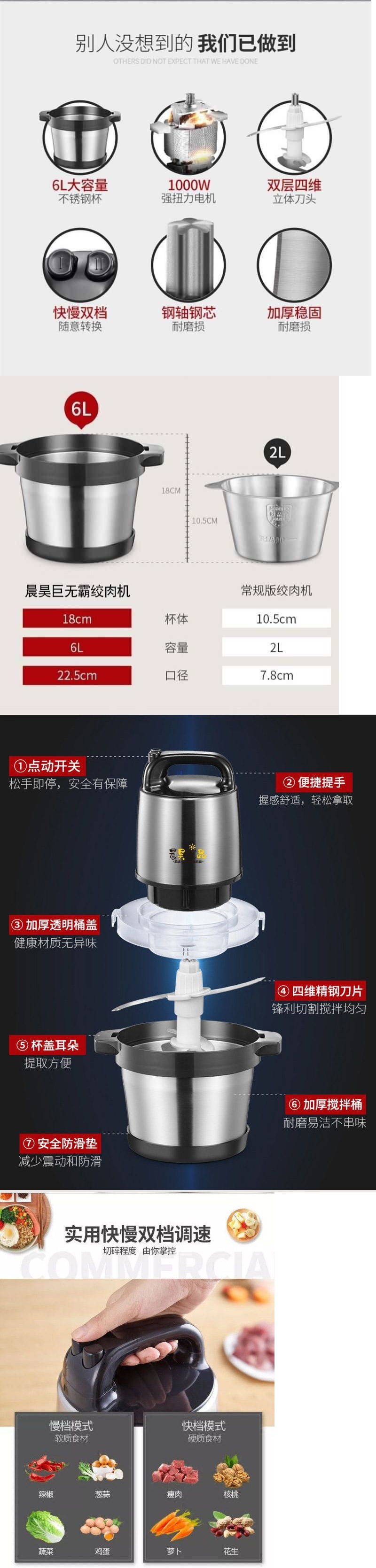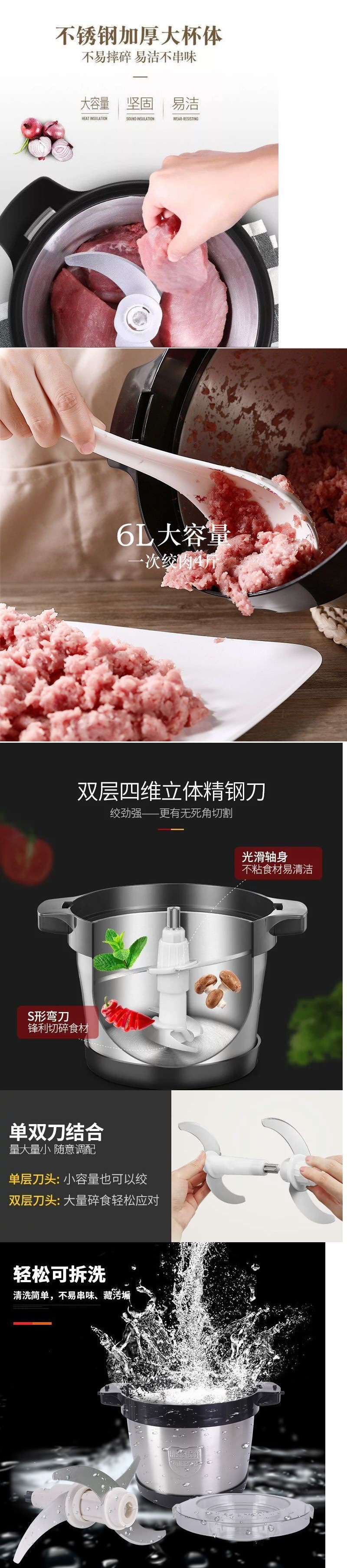 Máy xay thịt hộ gia đình 6 lít máy xay thịt bằng điện inox thương mại thịt bằm tương ớt khuấy máy nấu công suất cao