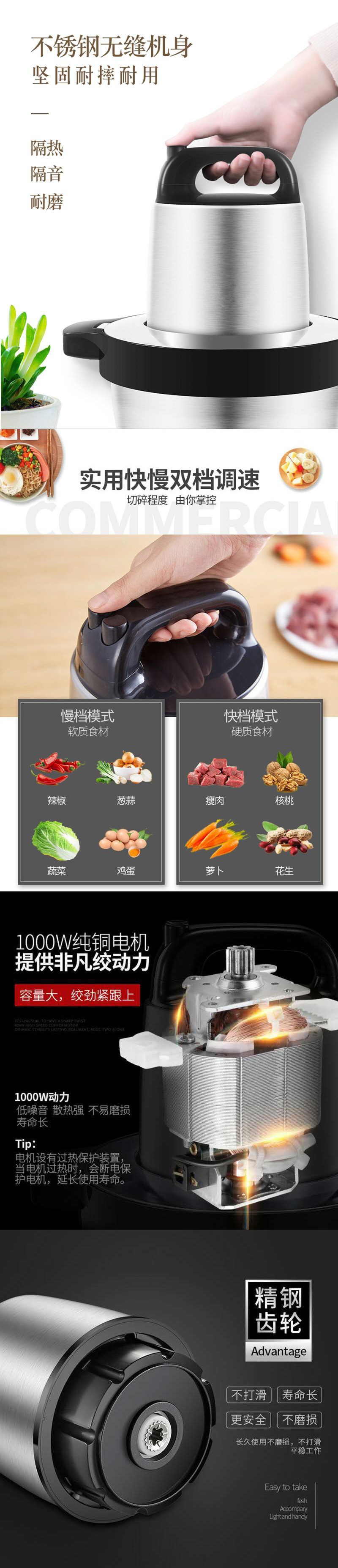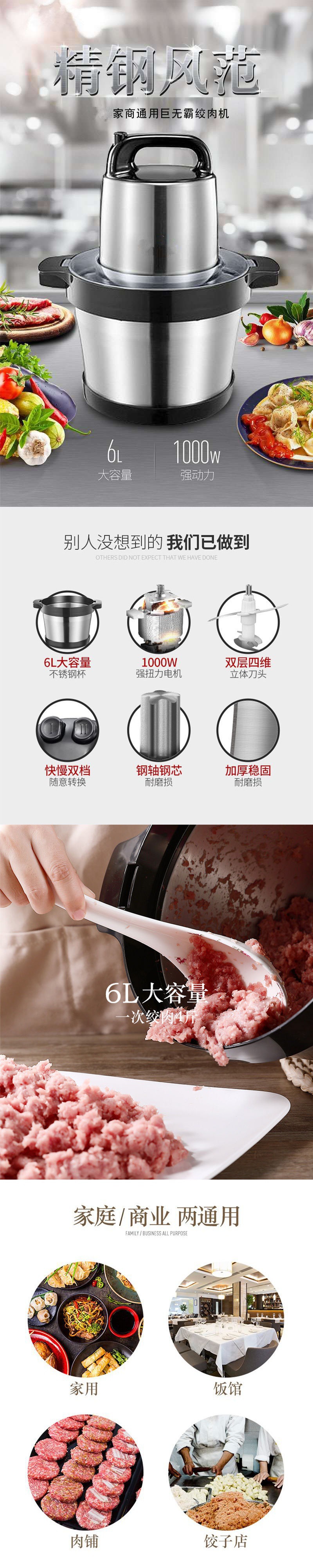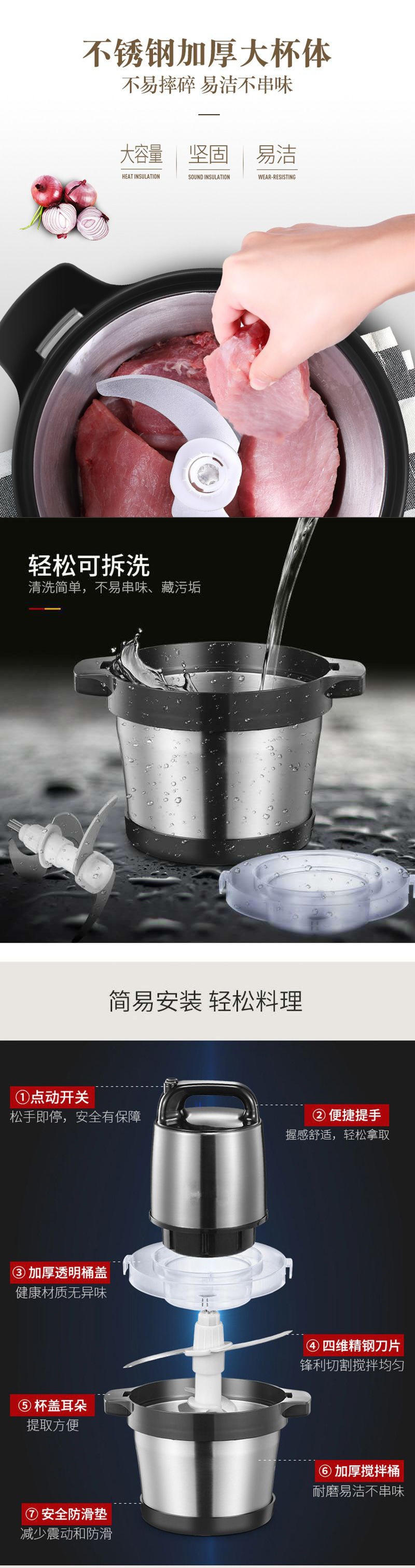 Máy Xay Thịt Thép Không Gỉ Điện Hộ Gia Đình Rau Băm Khuấy Tiêu Khuấy Tỏi Nhồi Món Ăn Nhà Sản Xuất Bán Buôn