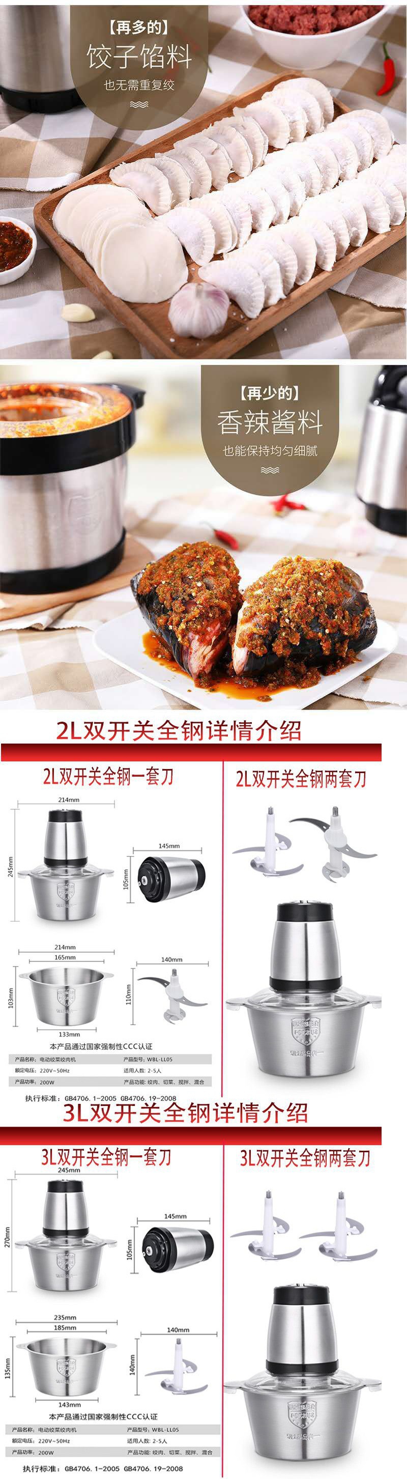 Máy Xay Thịt Thép Không Gỉ Điện Hộ Gia Đình Rau Băm Khuấy Tiêu Khuấy Tỏi Nhồi Món Ăn Nhà Sản Xuất Bán Buôn