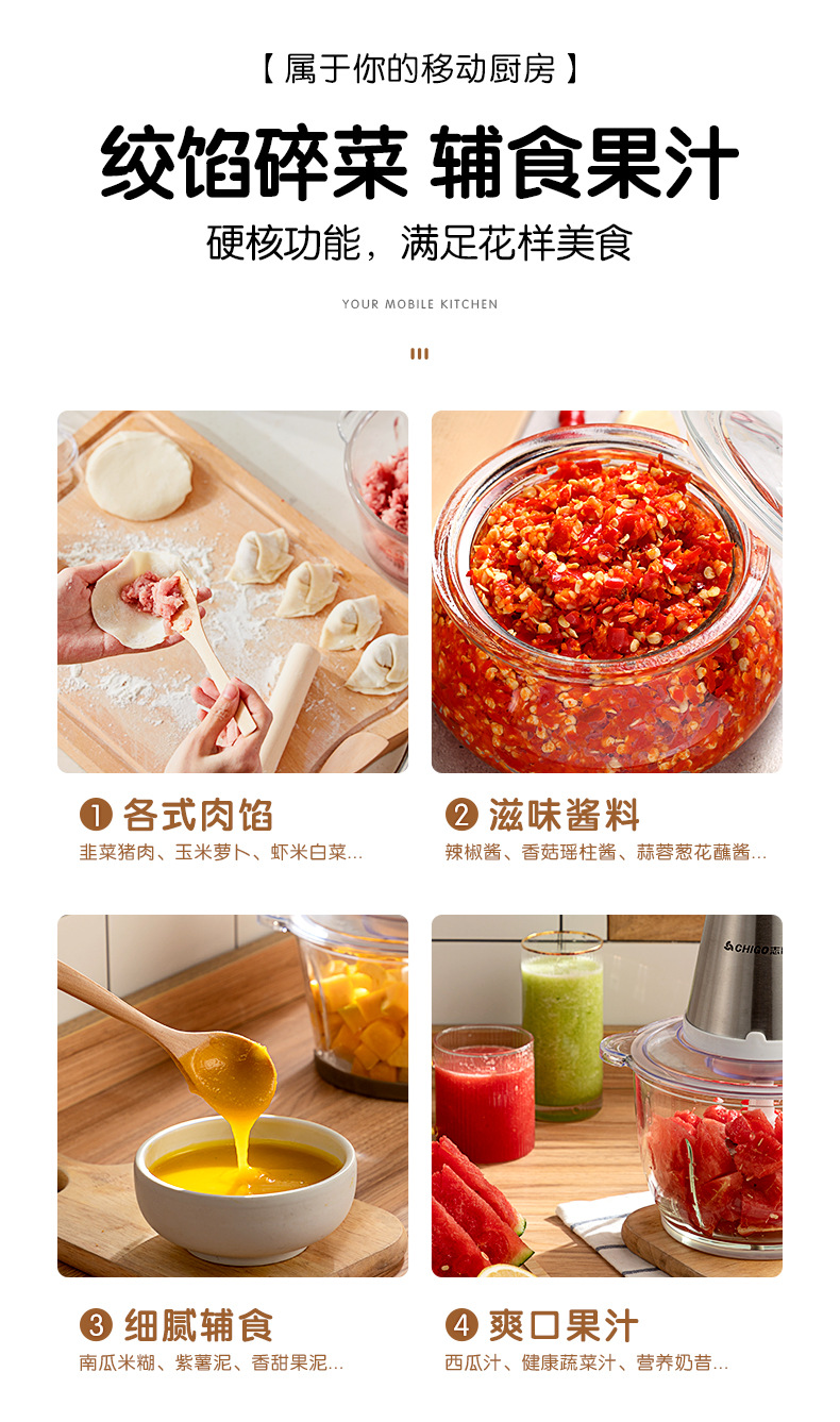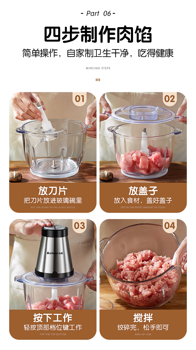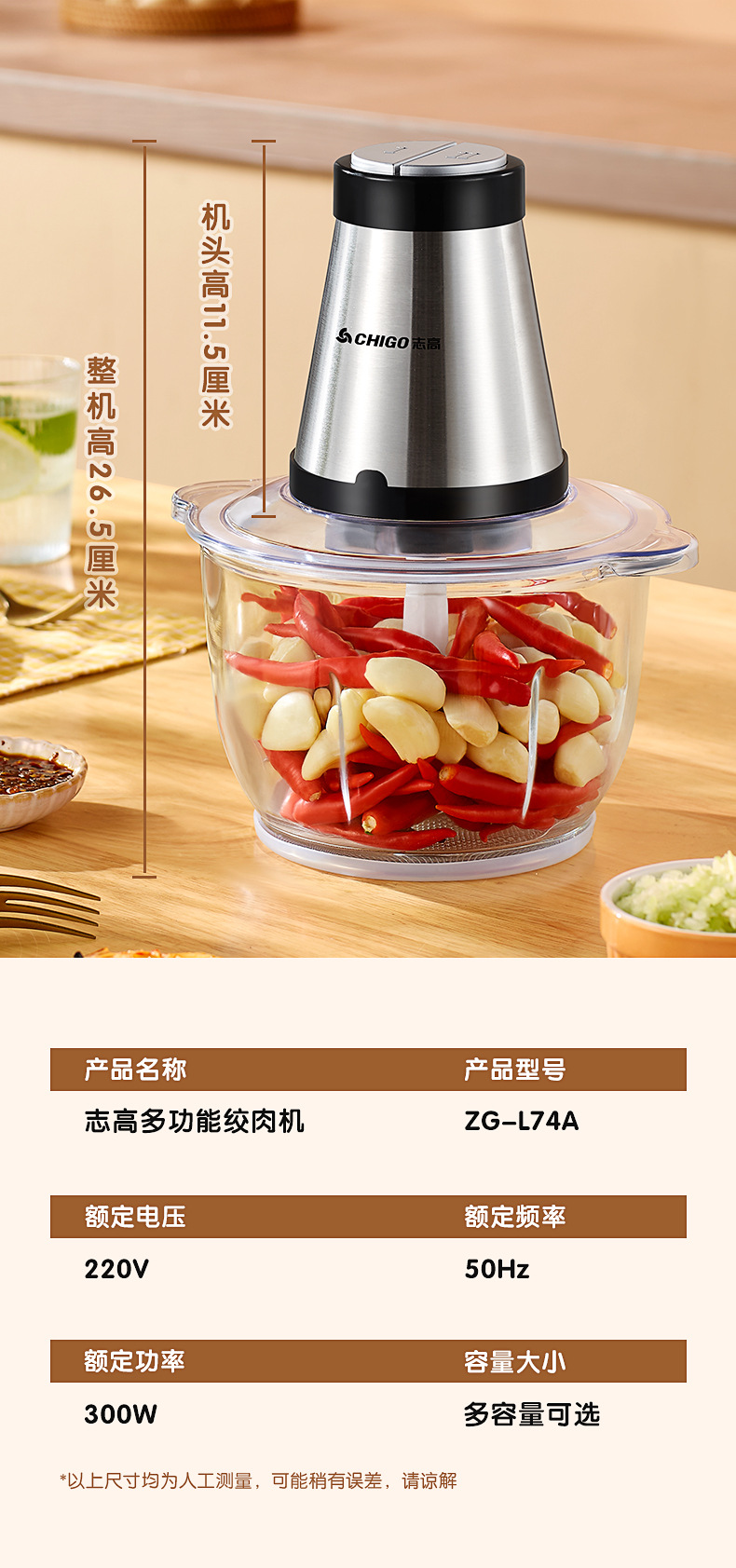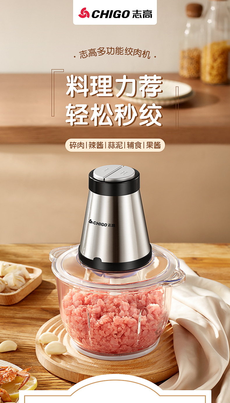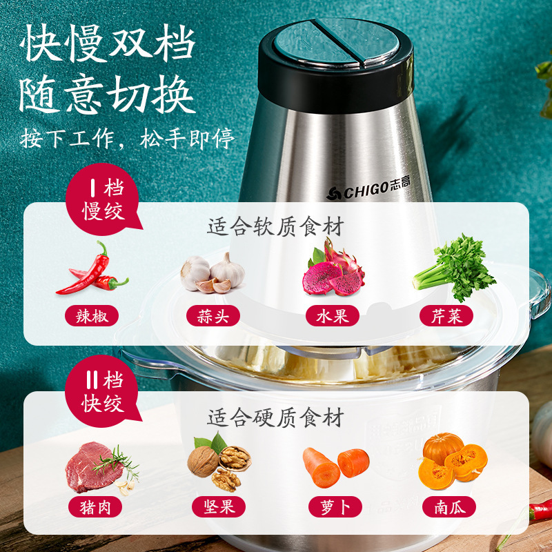 Máy Xay Thịt Zhigao Điện Khuấy Thịt Hộ Gia Đình Ớt Khuấy Máy Inox Nấu Tỏi Máy