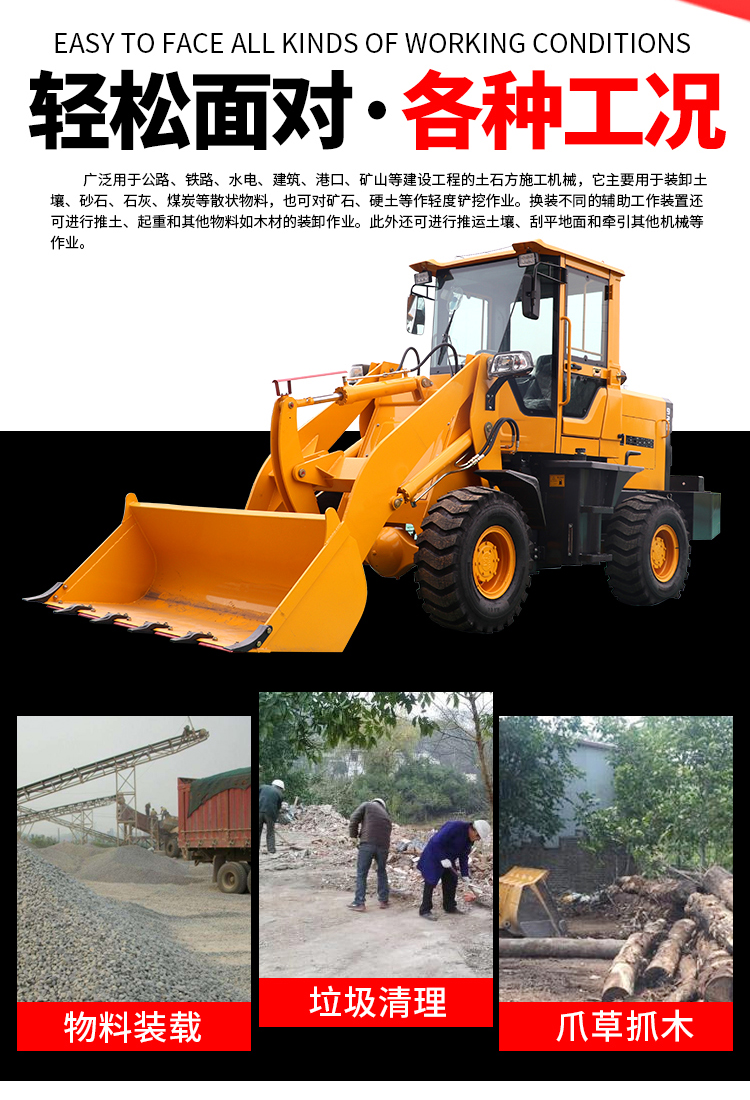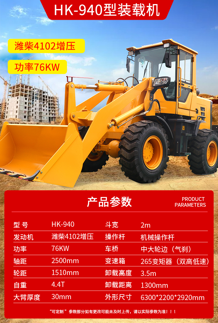 产品为定制款装载机,不支持七天无理由退换货,最后两个标签SKU为定金,单拍不发货,需跟客服联系确定整机价格。