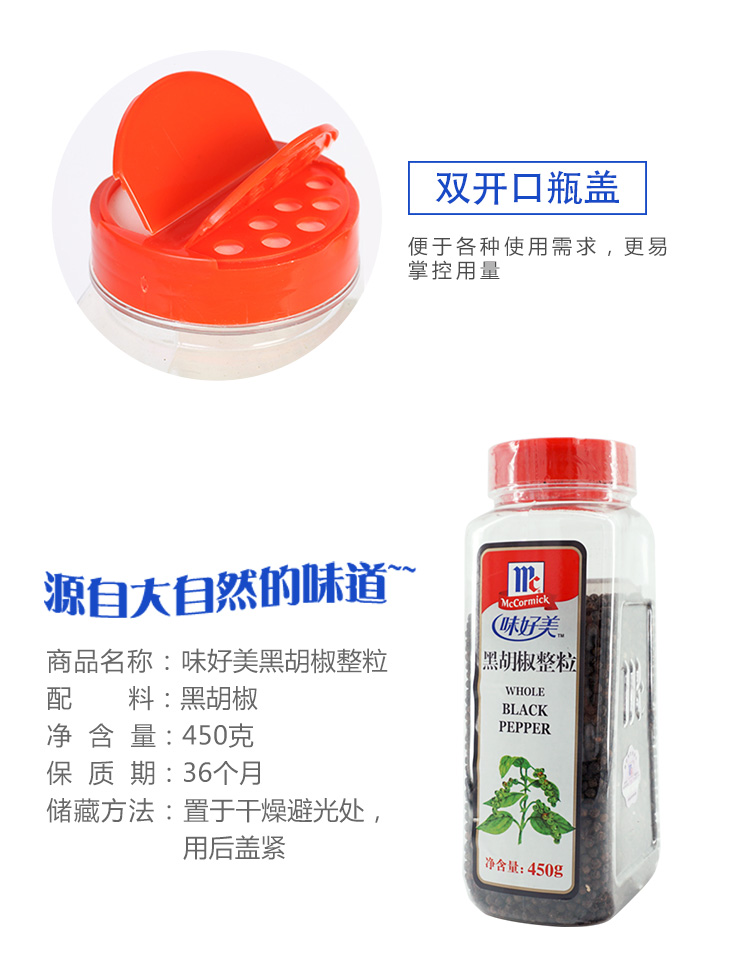 McCormick Hạt tiêu đen nguyên hạt 450g Gia vị ngâm bếp Thành phần Gà rán Muối tiêu BBQ Gia vị