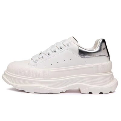 McQueen trắng 2023 giày đế dày mới giày nữ giày McQueen nhỏ màu trắng giày tăng chiều cao ren trước nữ bốn mùa mẫu phù hợp bán buôn