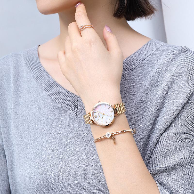 Megir thời trang mới thanh lịch đơn giản vỏ thép nguyên khối mặt mẹ phù hợp với đồng hồ bán buôn chống thấm nước dành cho nữ