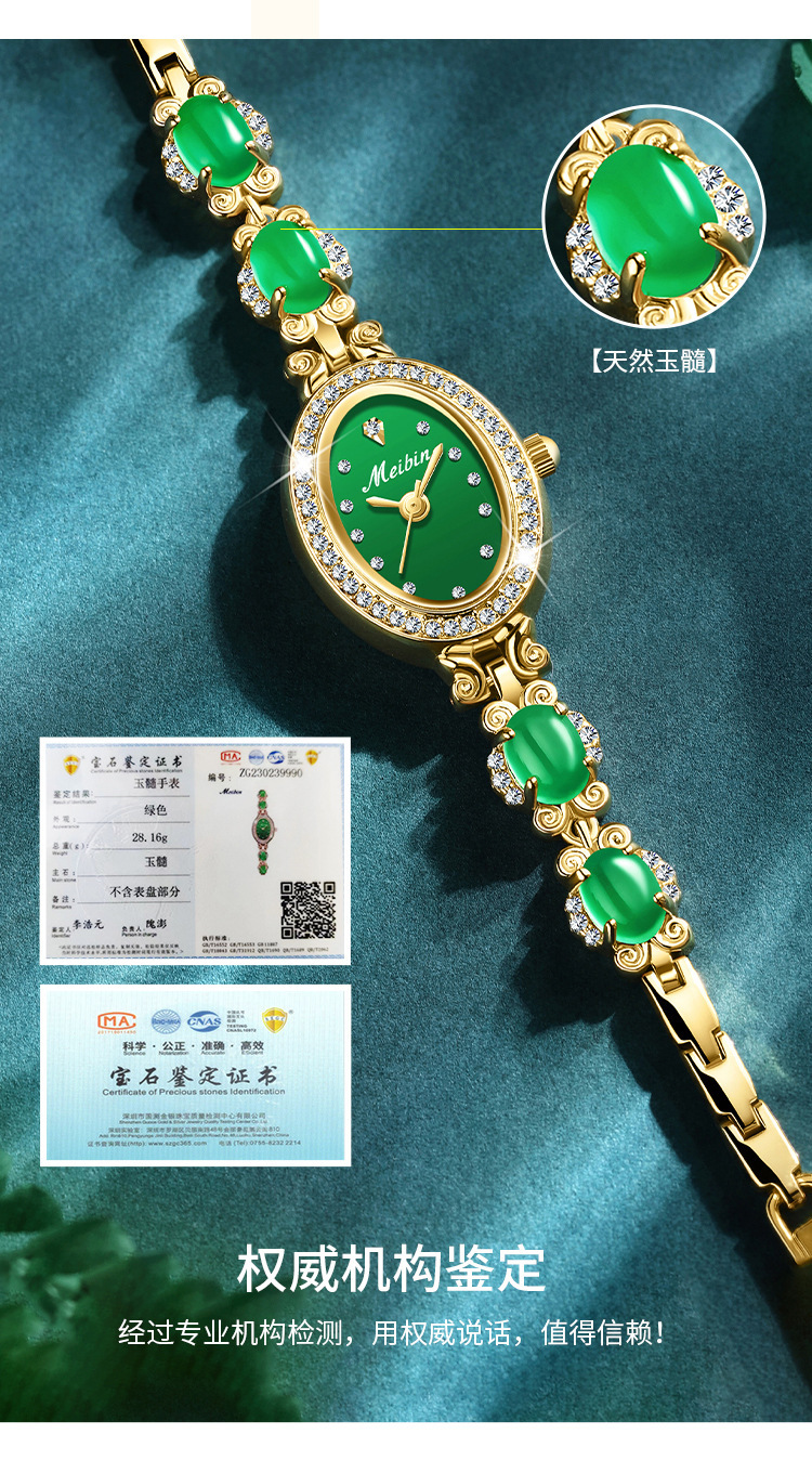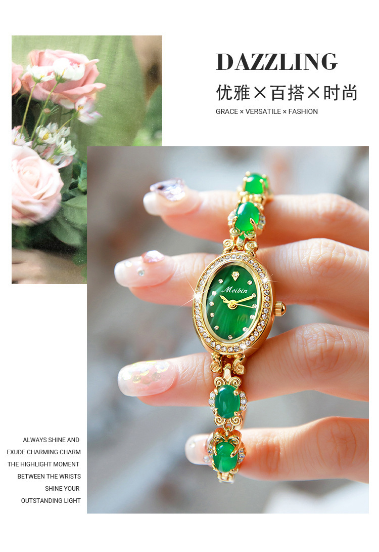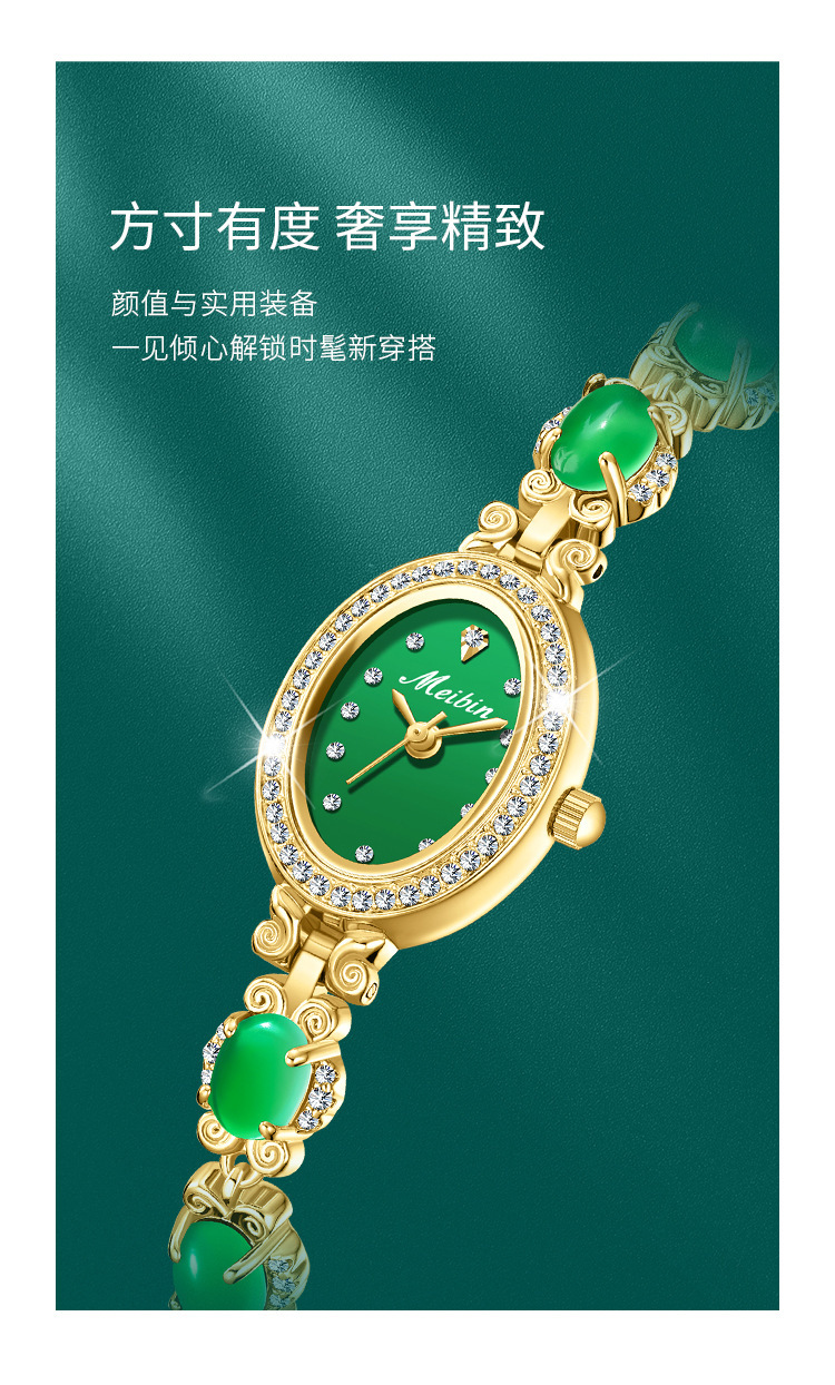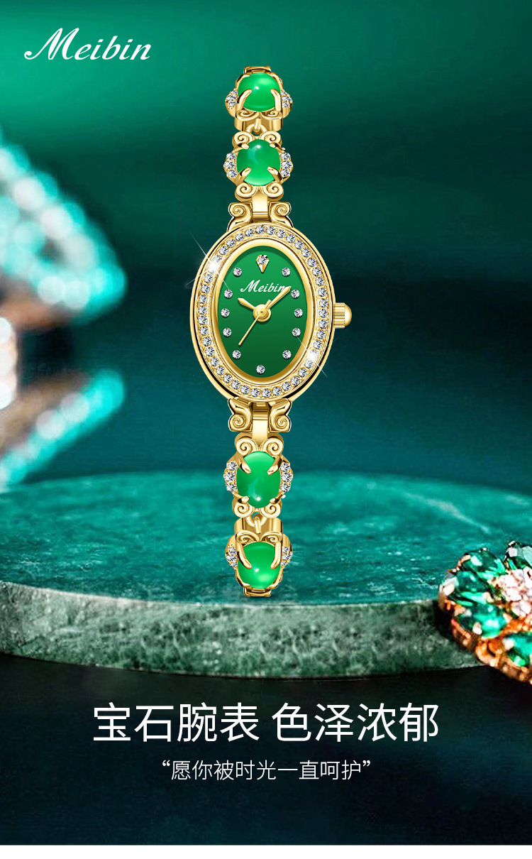 Đồng hồ Meibin meibin mới Vòng đeo tay chalcedony Đồng hồ nữ Ruyi kim cương xanh thời trang