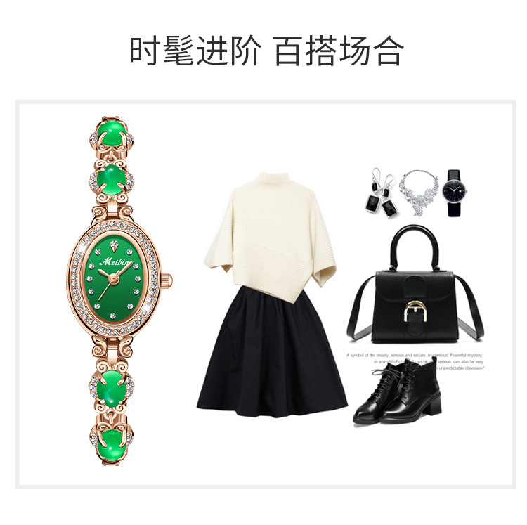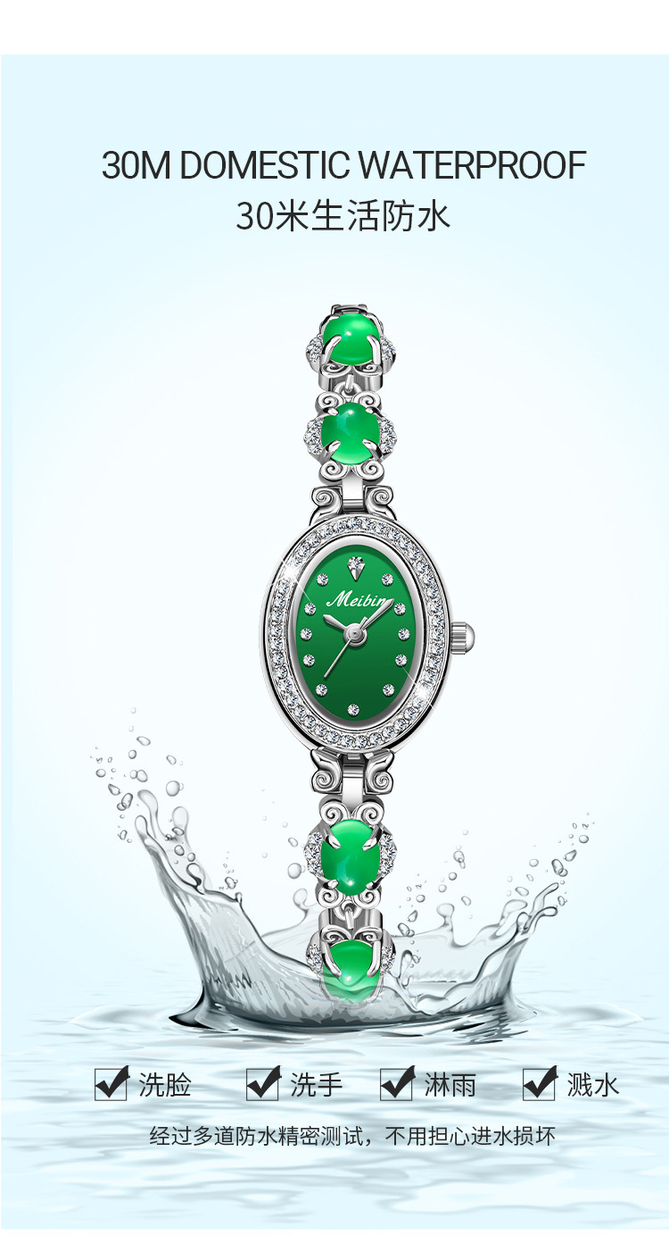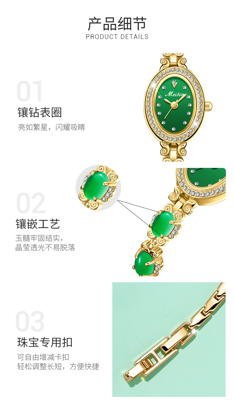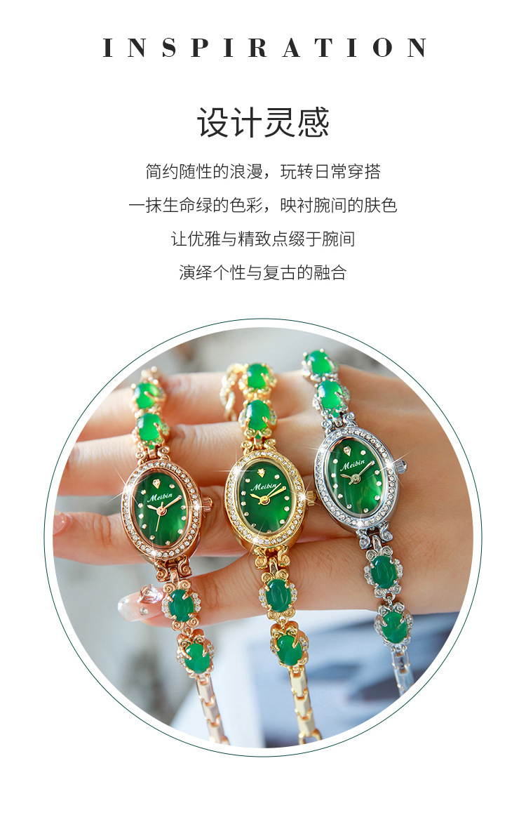 Đồng hồ Meibin meibin mới Vòng đeo tay chalcedony Đồng hồ nữ Ruyi kim cương xanh thời trang