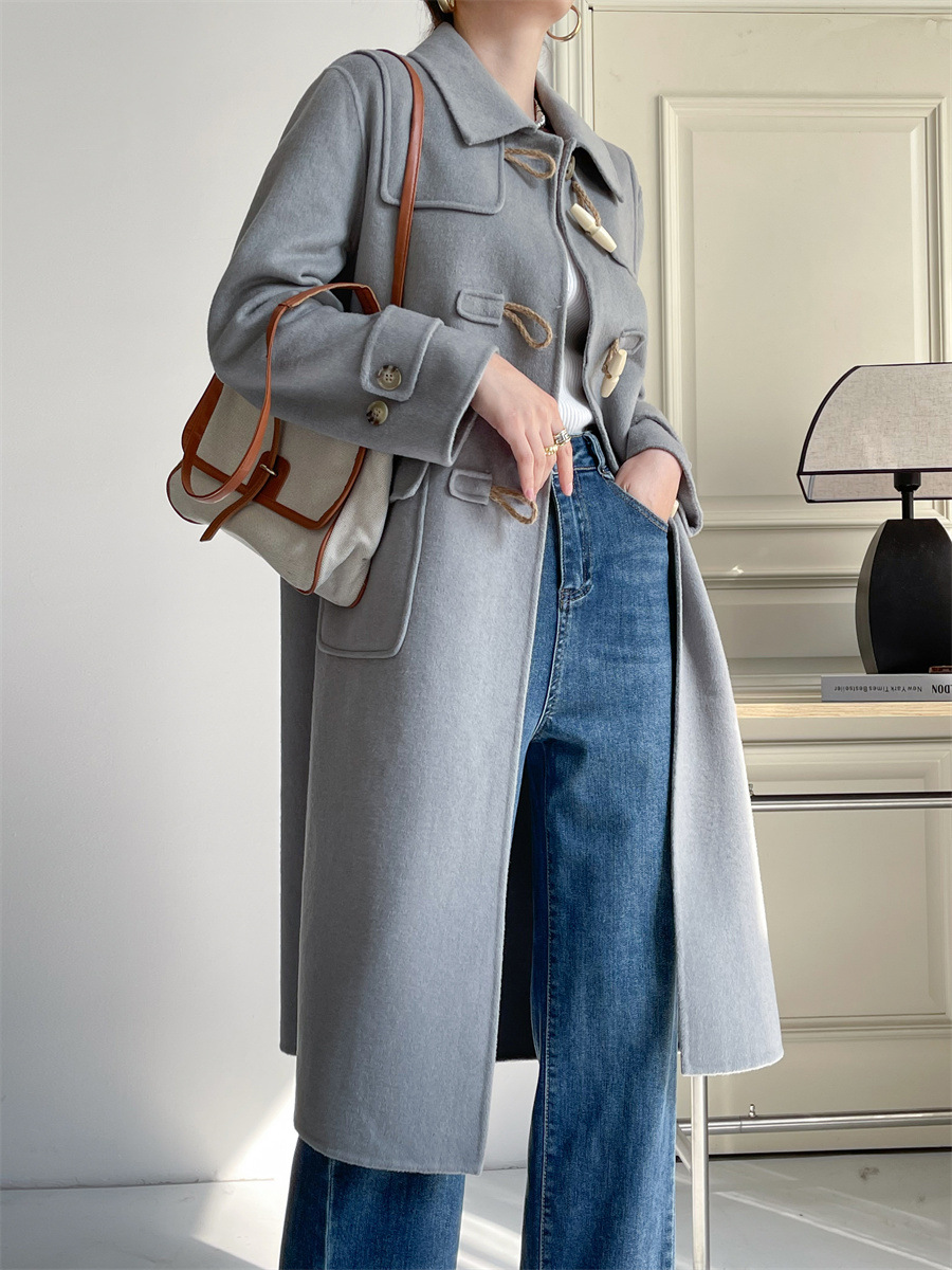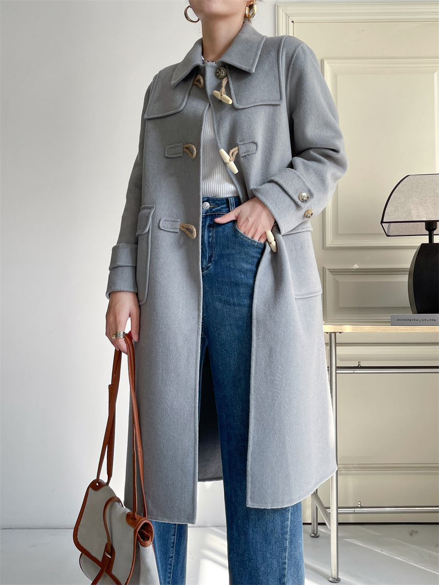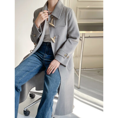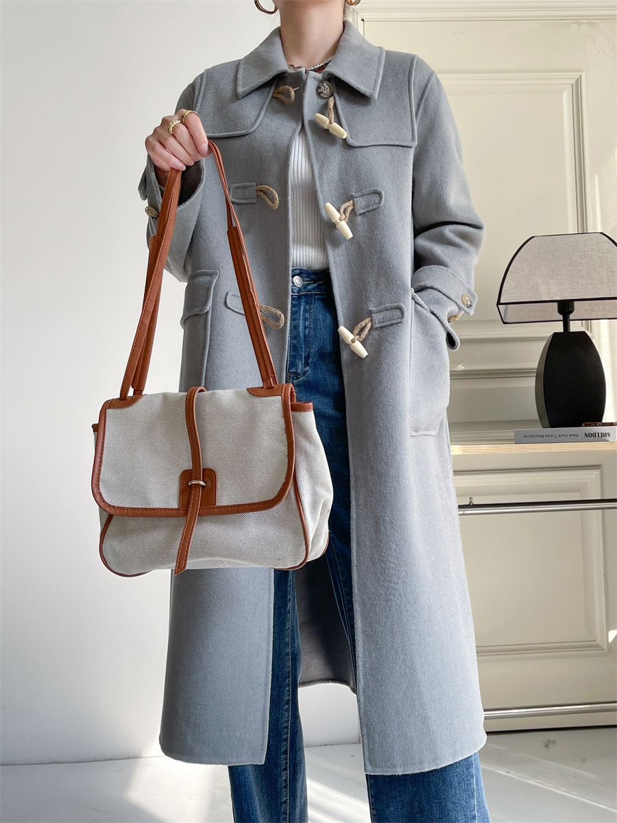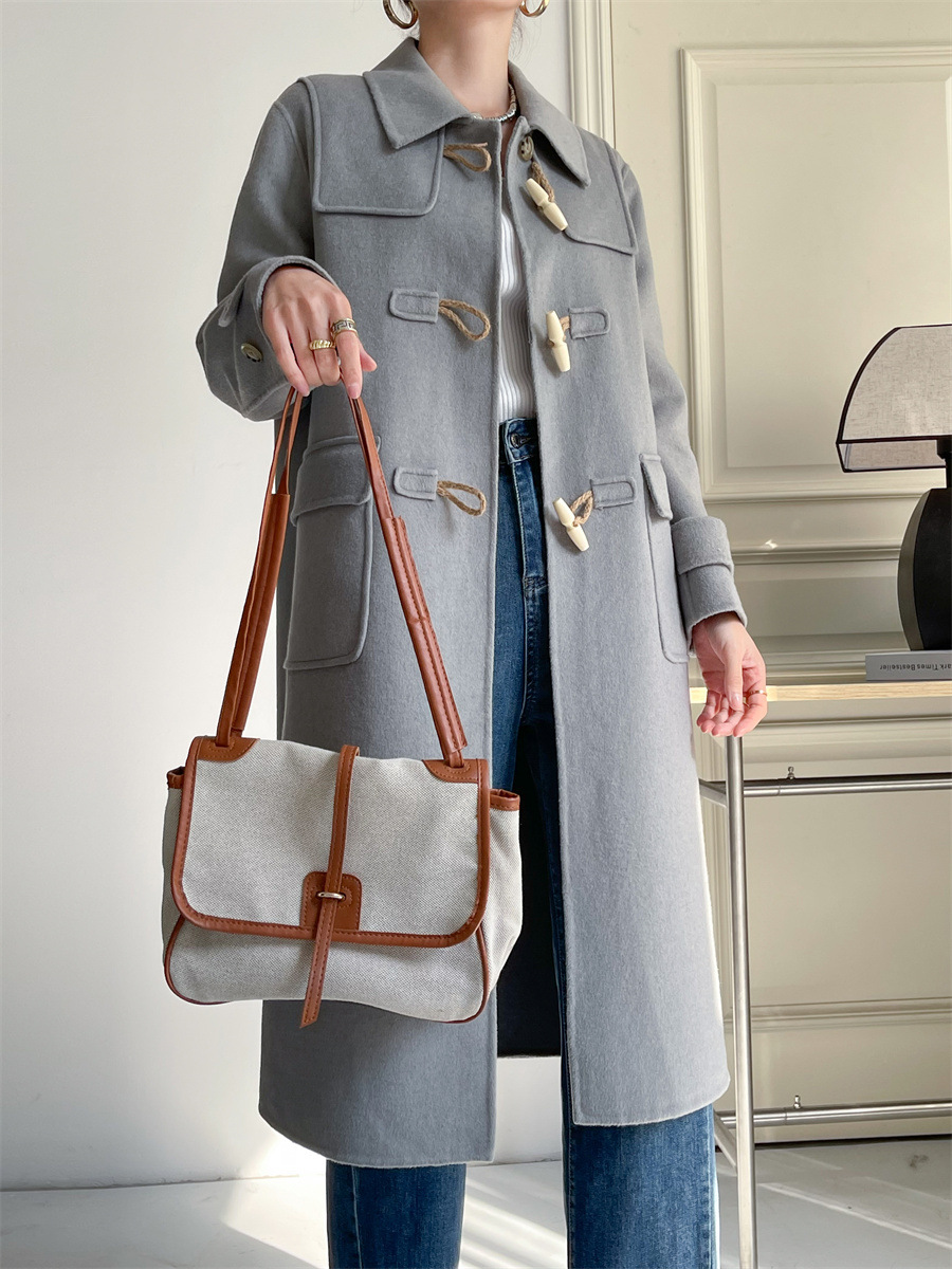 Meng Zixi dây gai dầu khóa sừng bỏ túi 2 mặt áo khoác len nữ giữa chiều dài áo khoác len bán buôn X469