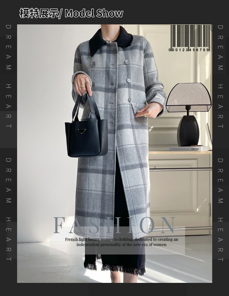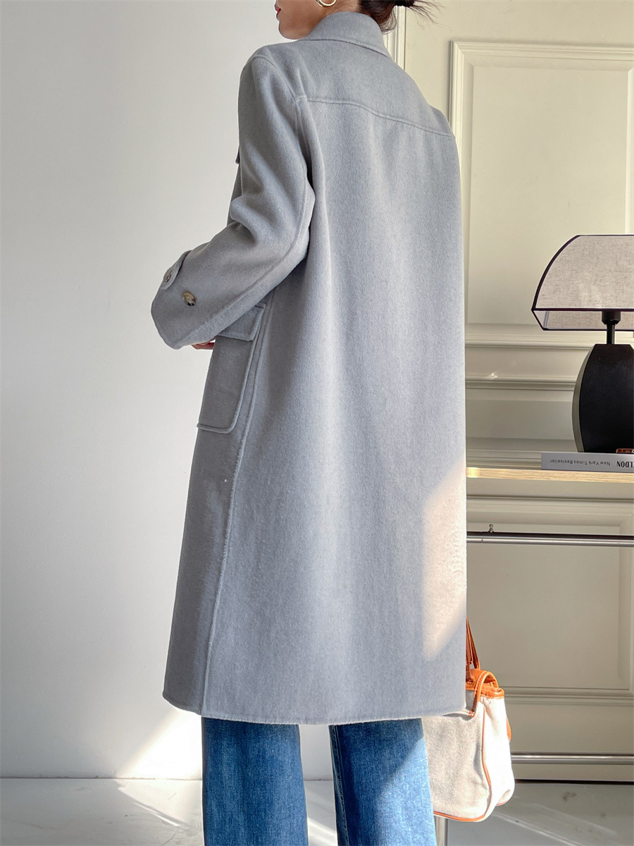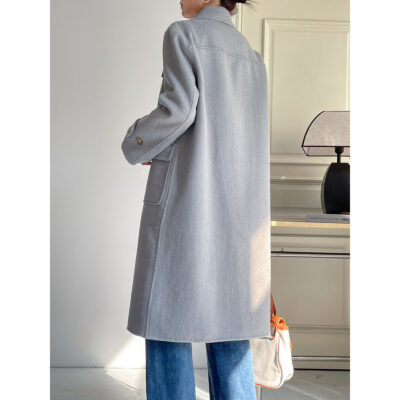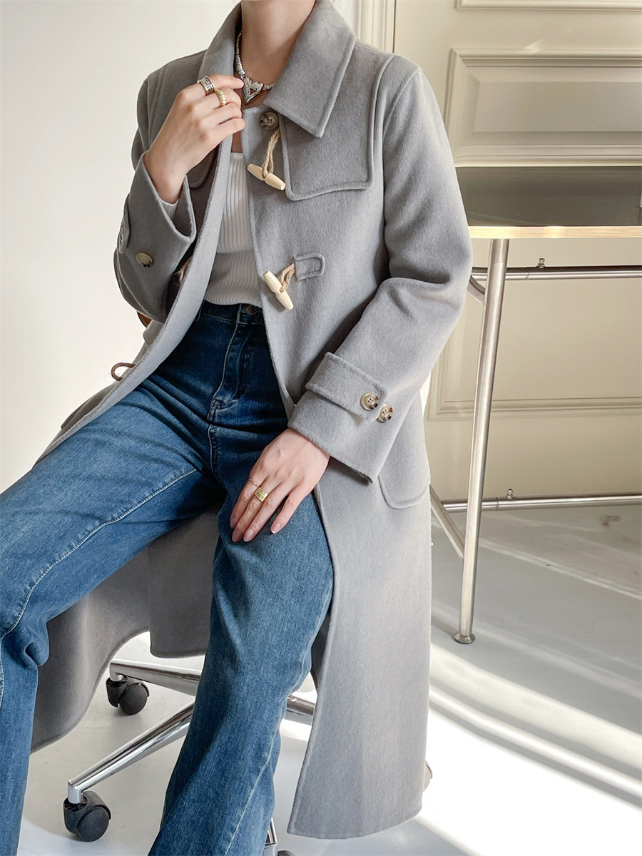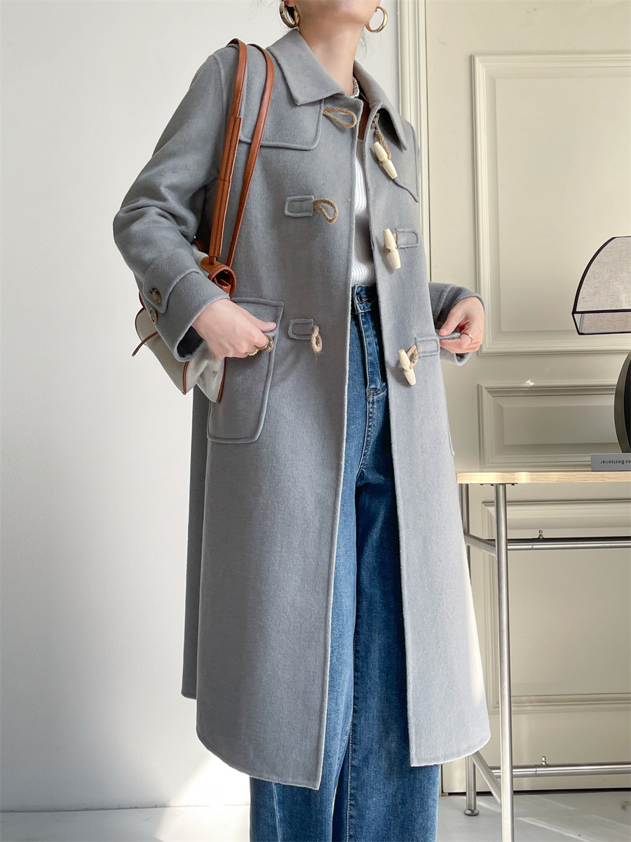 Meng Zixi dây gai dầu khóa sừng bỏ túi 2 mặt áo khoác len nữ giữa chiều dài áo khoác len bán buôn X469