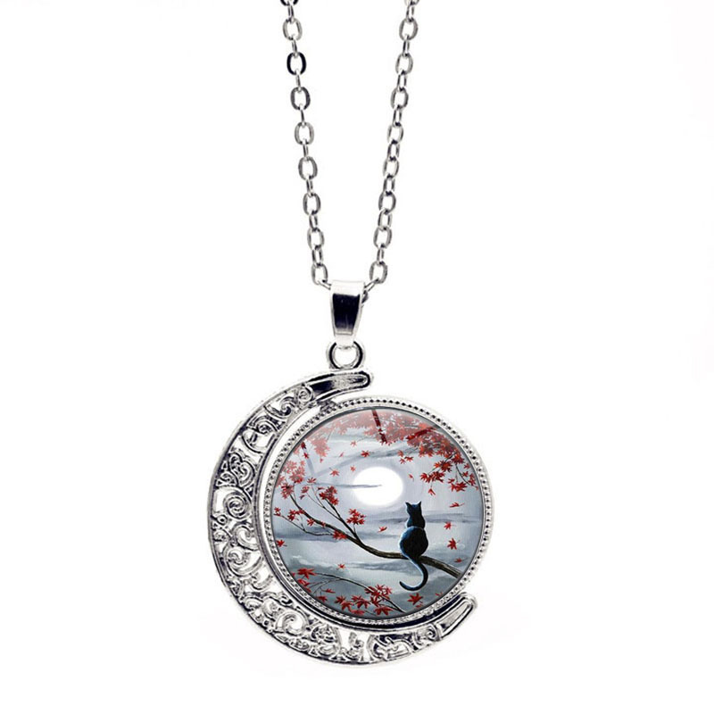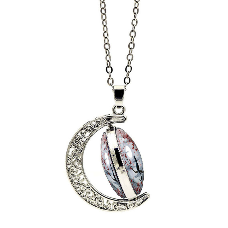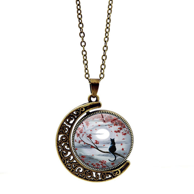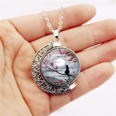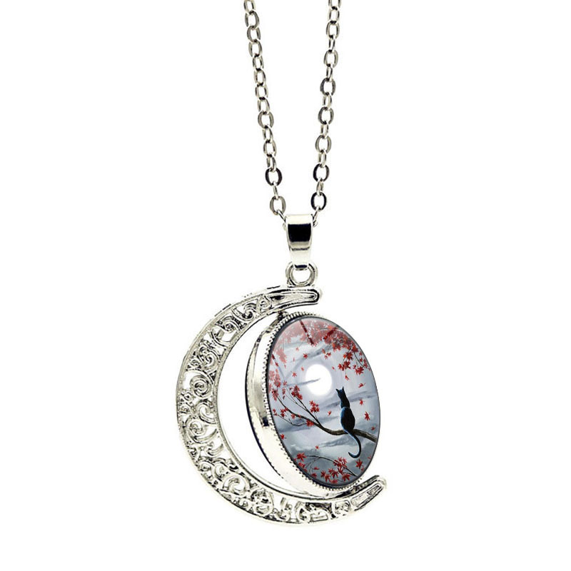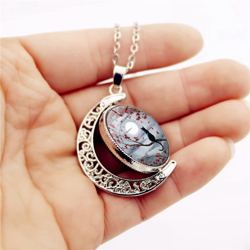Mèo Dưới Mặt Trăng Thời Gian Đá Quý Vòng Cổ Nữ Đa Năng Xuyên Biên Giới Hàng Mới Về Phụ Kiện Xoay Mặt Trăng Mặt Dây Chuyền Áo Len Dây Chuyền
