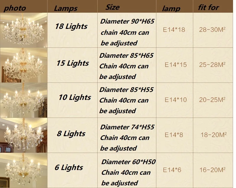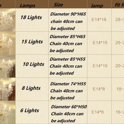 18 lights diameter about 90cm*height 70cm+chains size about 40cm height