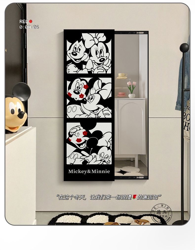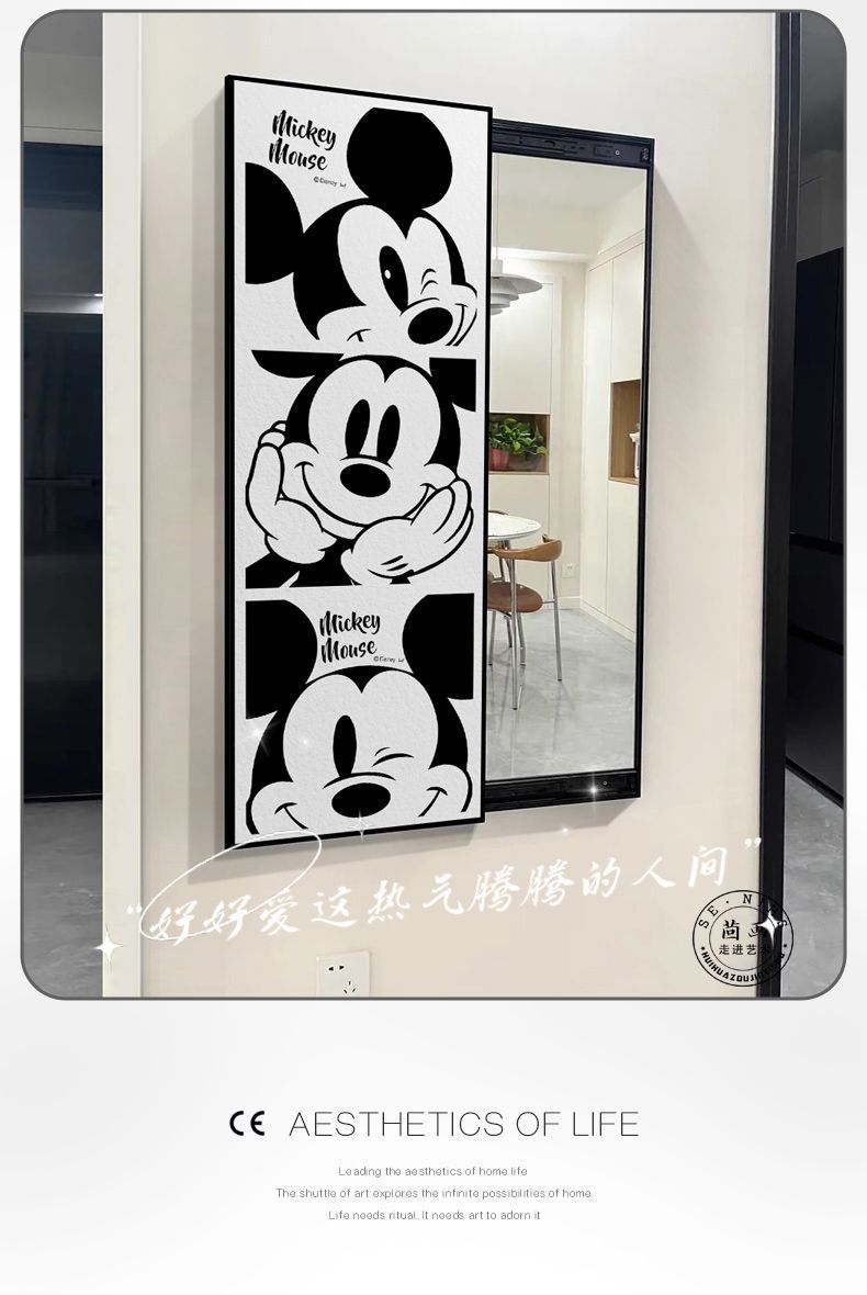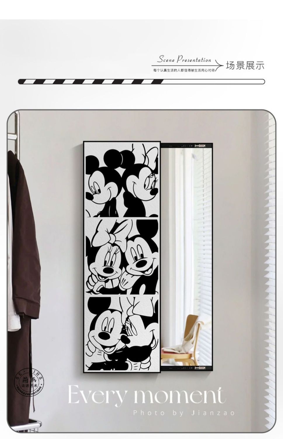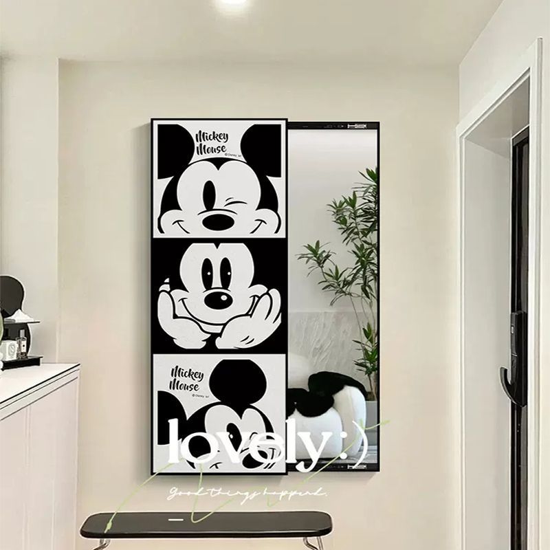 Mickey đen trắng ẩn kéo đẩy gương toàn thân ins gió vào hiên nhà tranh trang trí cảm giác hành lang treo tranh