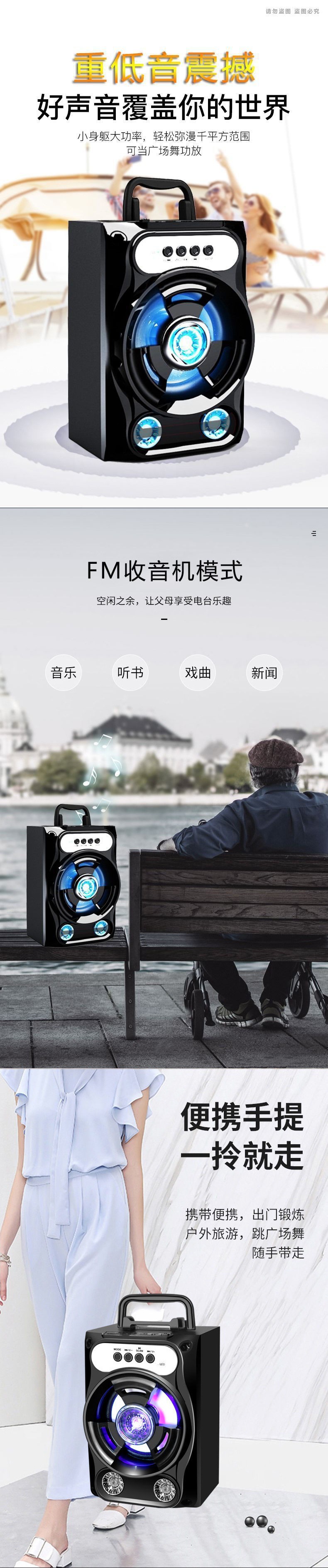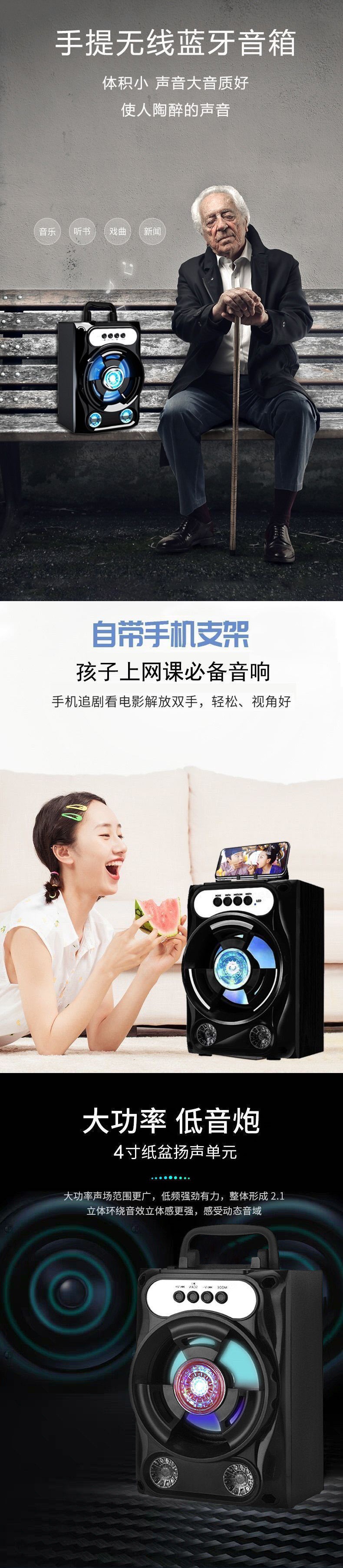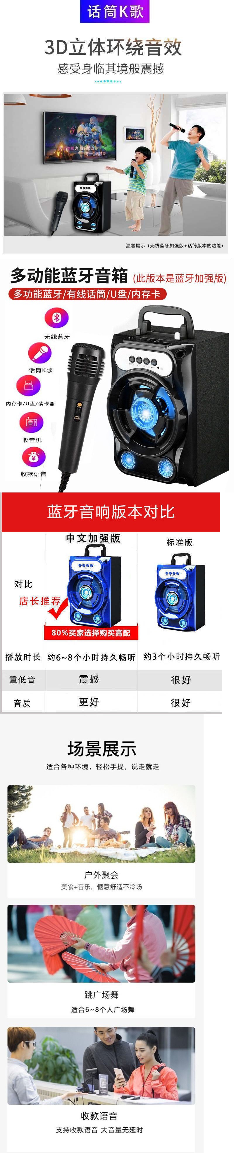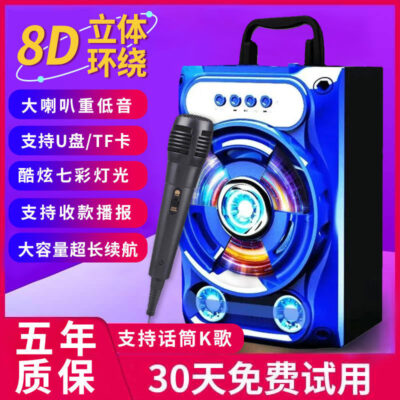 Micrô và âm thanh tất cả trong một máy karaoke không dây loa bluetooth ngoài trời di động âm lượng lớn máy tính gia đình khiêu vũ vuông