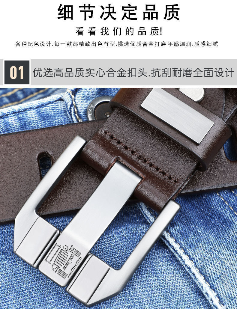 Miễn phí vận chuyển [lớp trên cùng da bò] thắt lưng nam khóa pin da bò nguyên chất thắt lưng nam thanh niên trung niên thắt lưng đơn giản