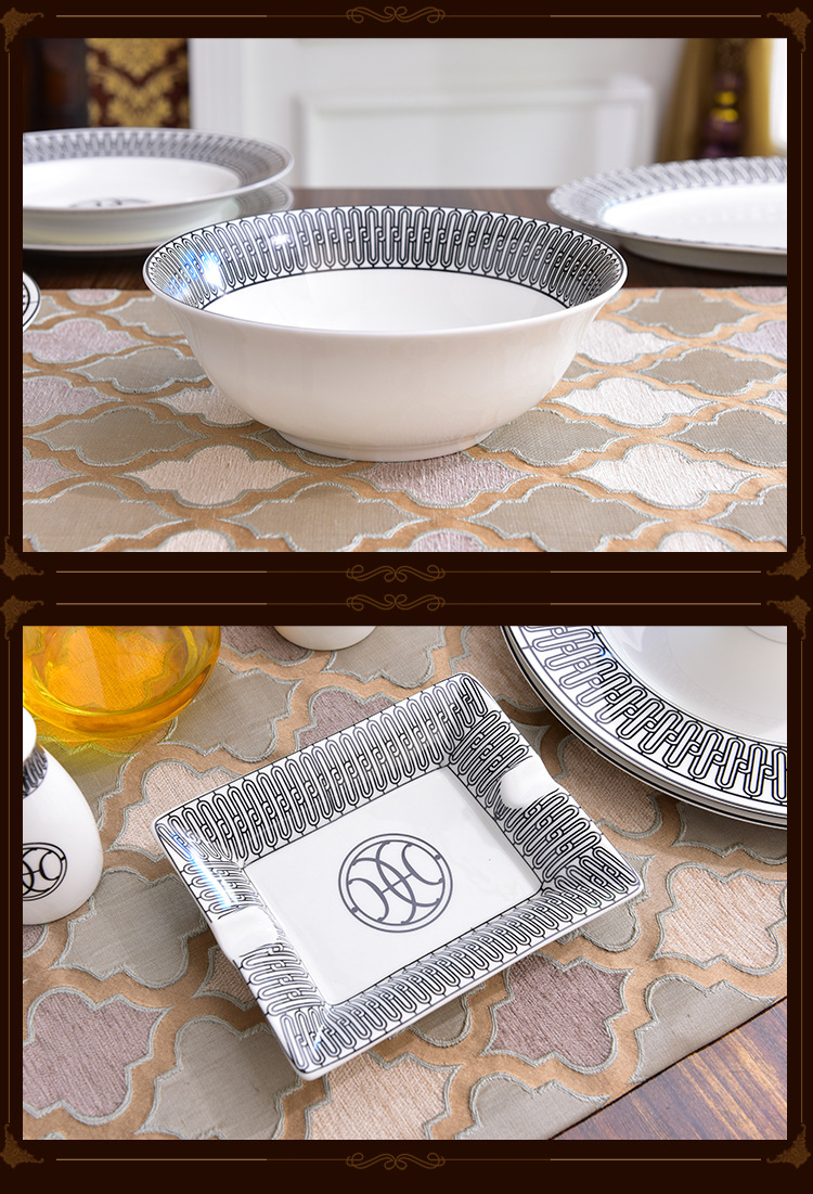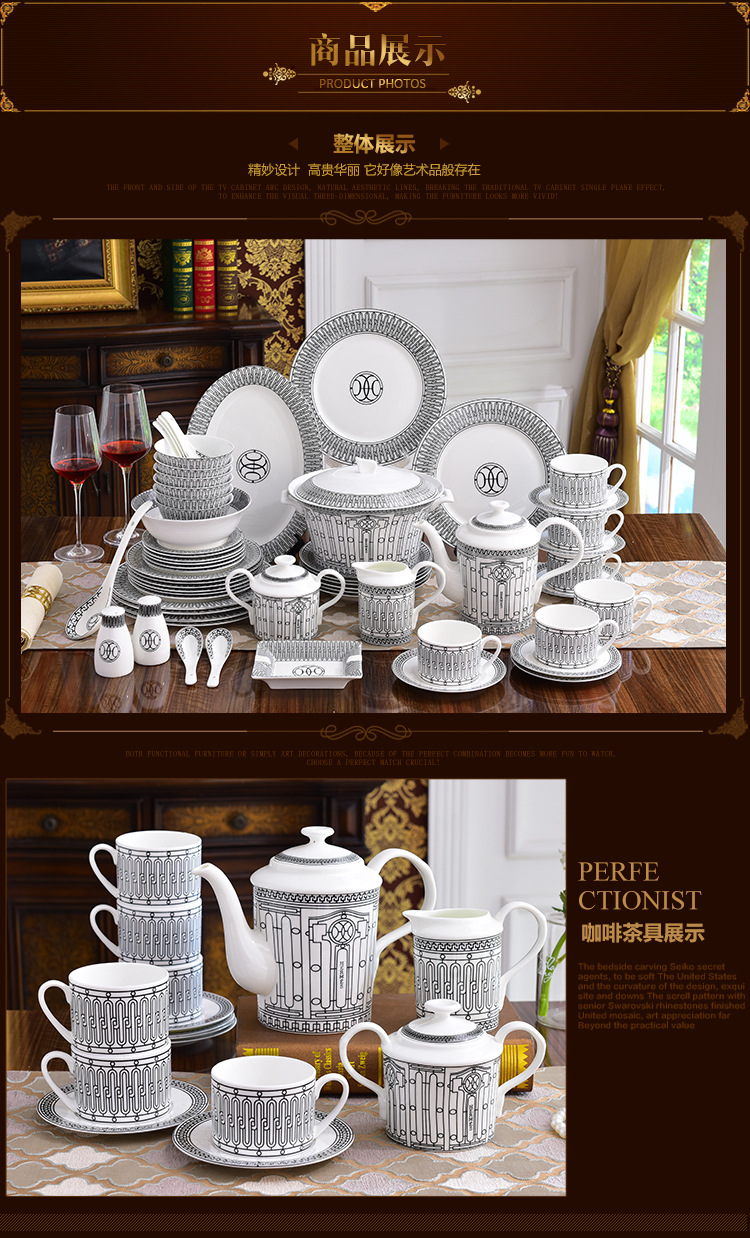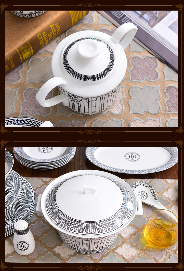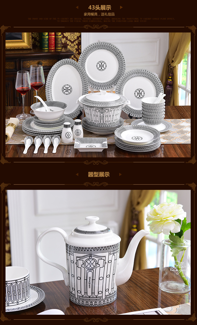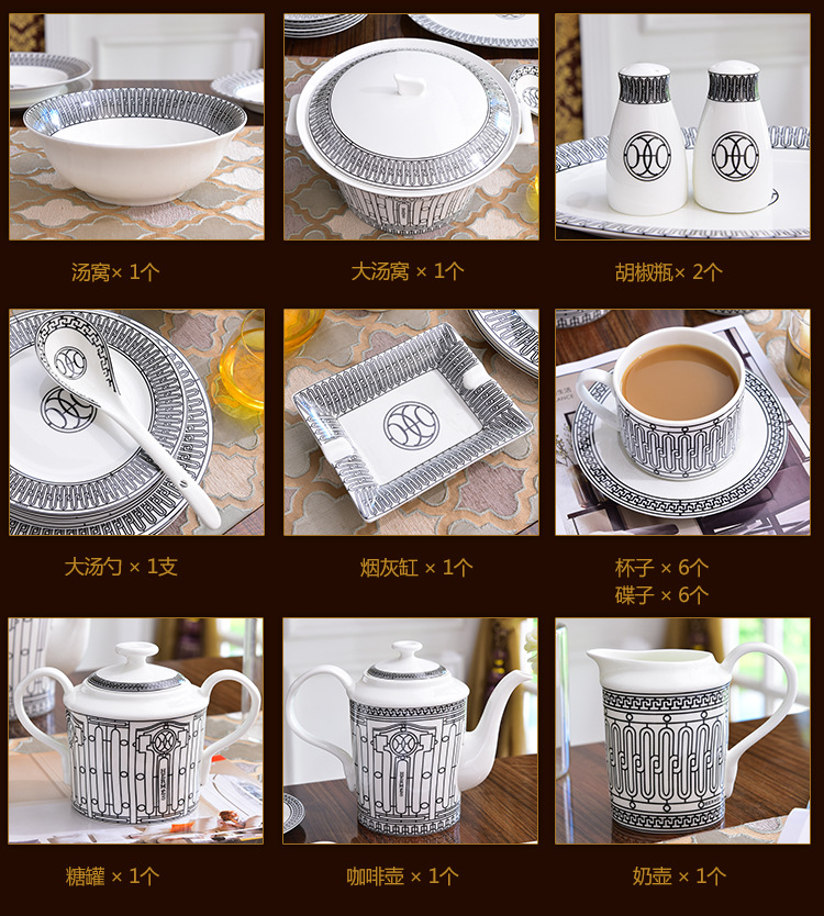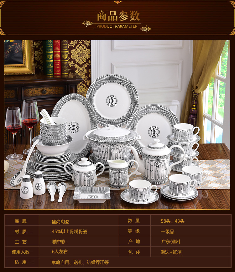 Miễn phí vận chuyển theo phong cách Châu Âu sang trọng H họ xương bộ đồ ăn Trung Quốc Bộ 58 đầu gốm bộ đồ ăn phương Tây đĩa bát thìa bộ cà phê