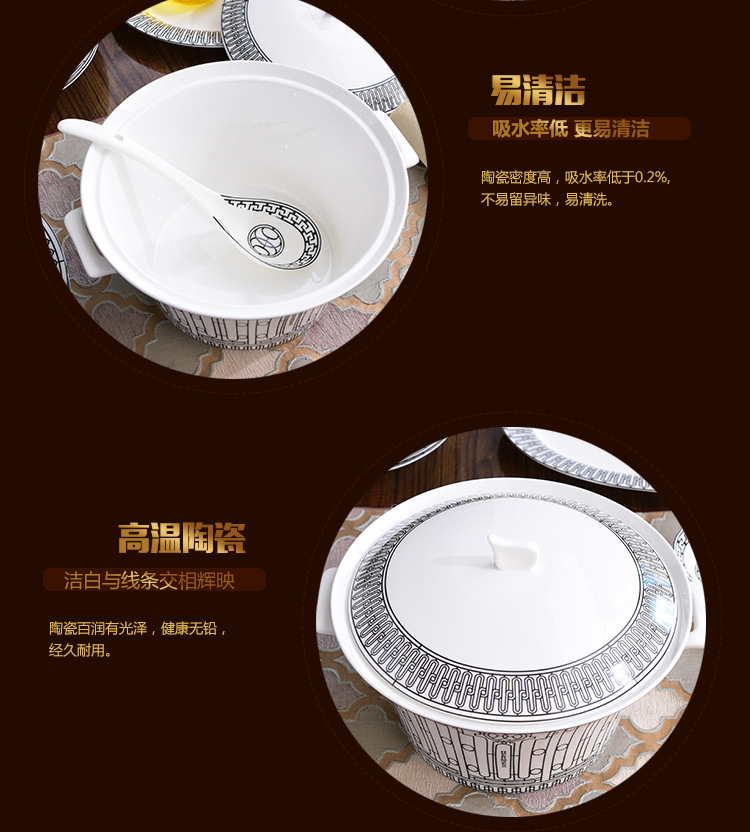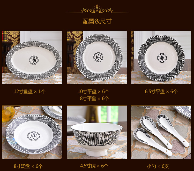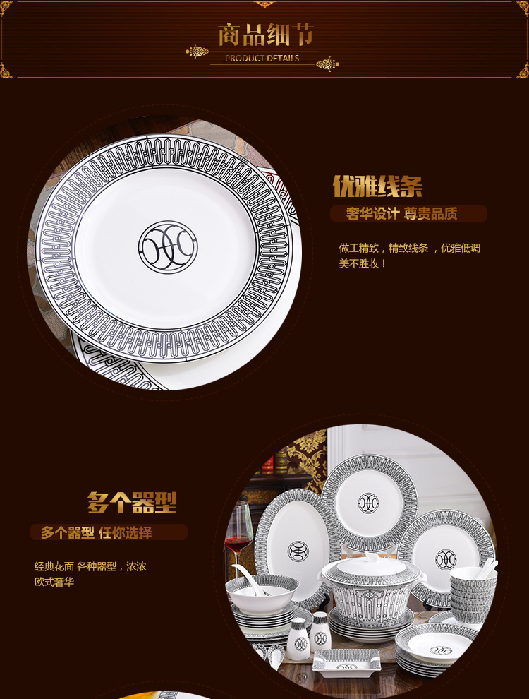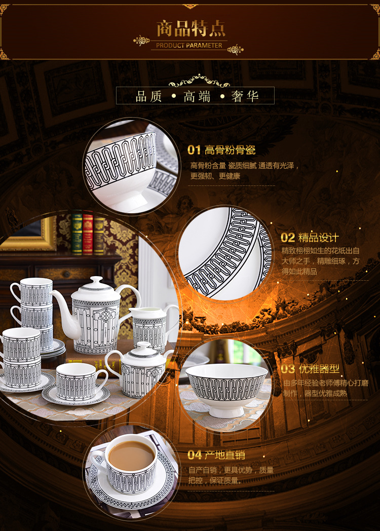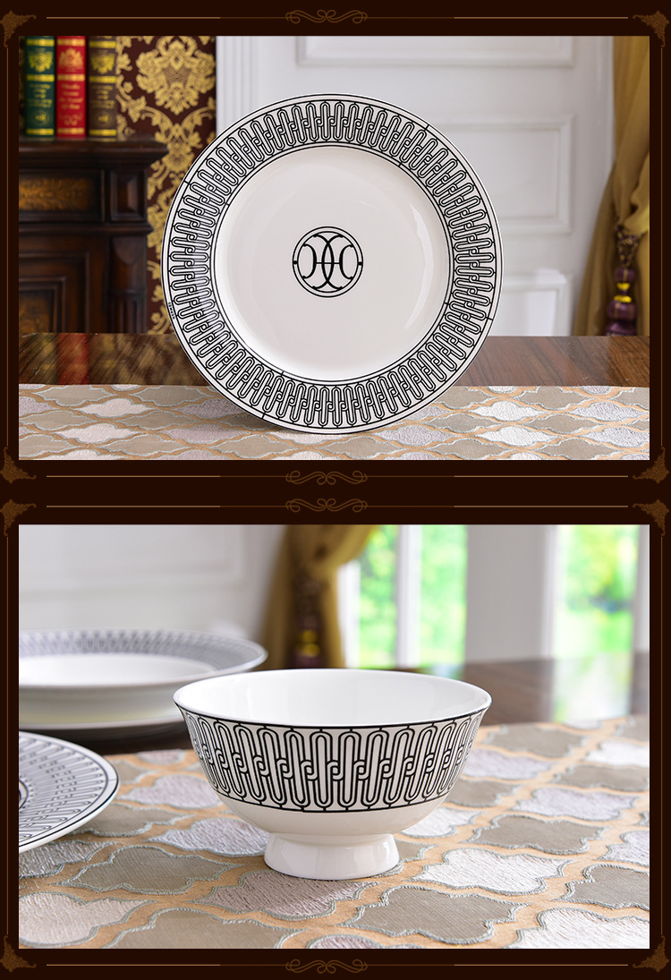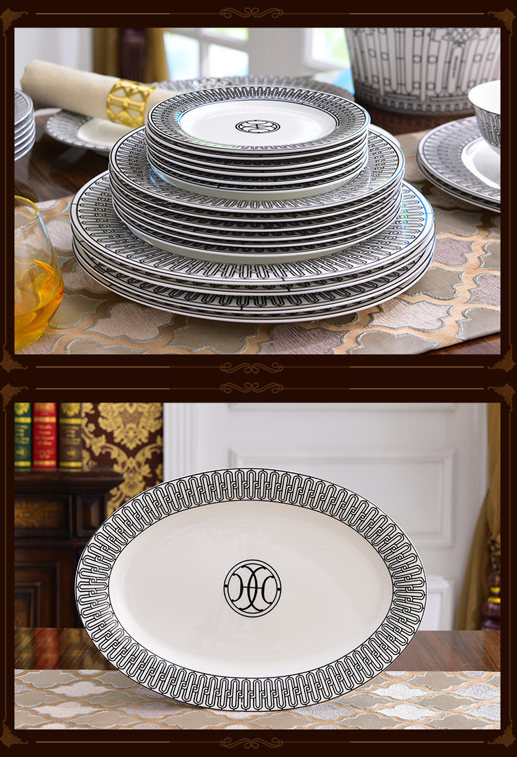 Miễn phí vận chuyển theo phong cách Châu Âu sang trọng H họ xương bộ đồ ăn Trung Quốc Bộ 58 đầu gốm bộ đồ ăn phương Tây đĩa bát thìa bộ cà phê