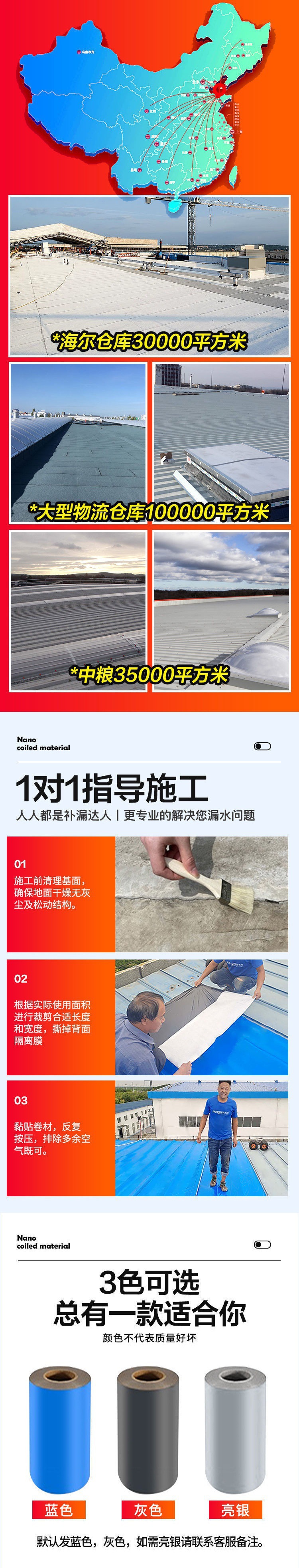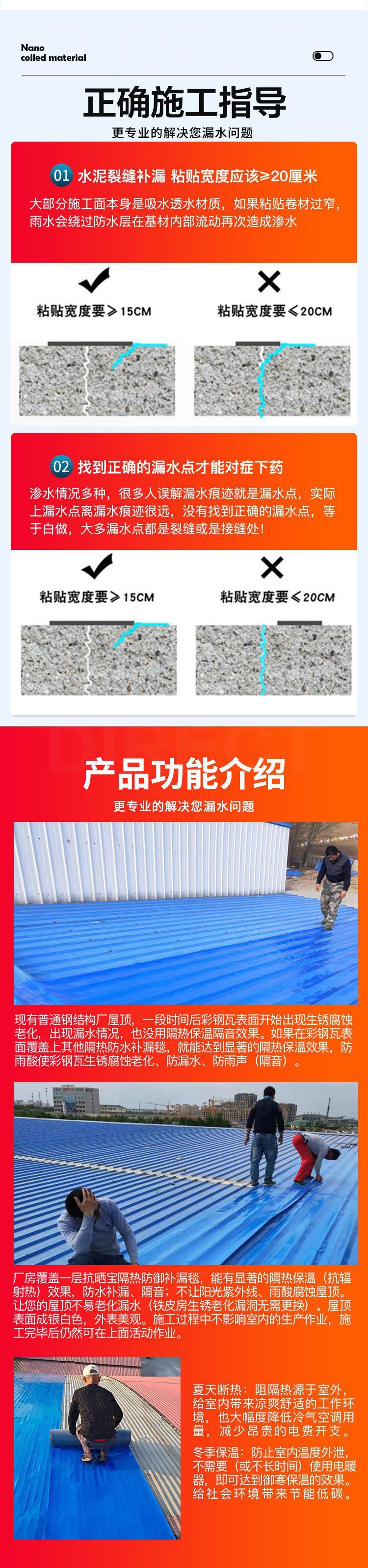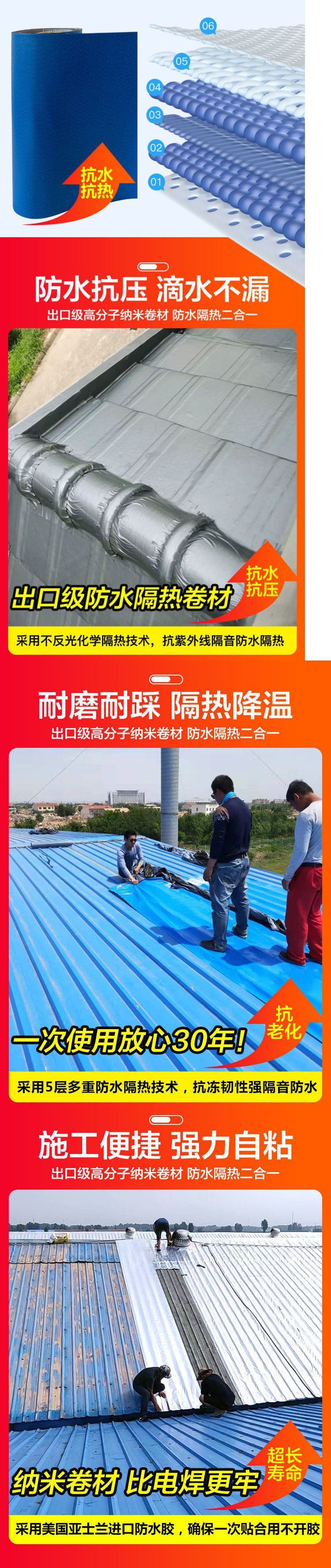 Miếng dán chống thấm mái màu ngói thép tự dính chất liệu cuộn chống rò rỉ chất liệu miếng dán dán mái nhà keo tấm sắt ngói amiang trạm độc lập