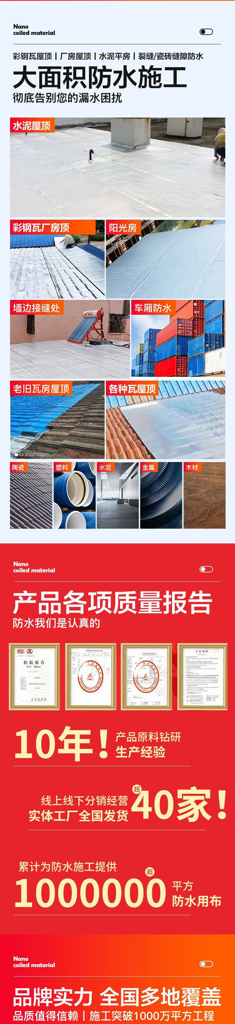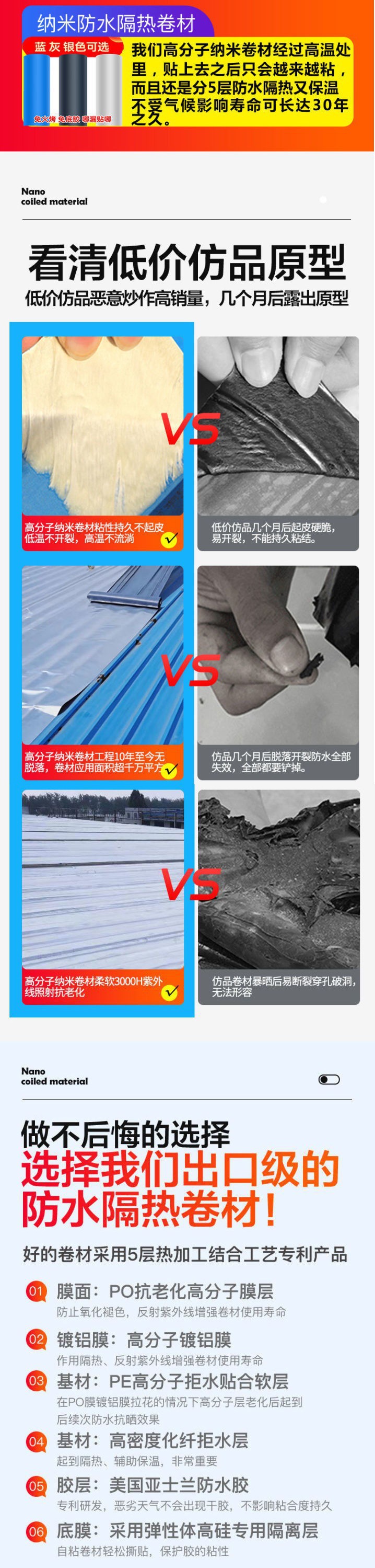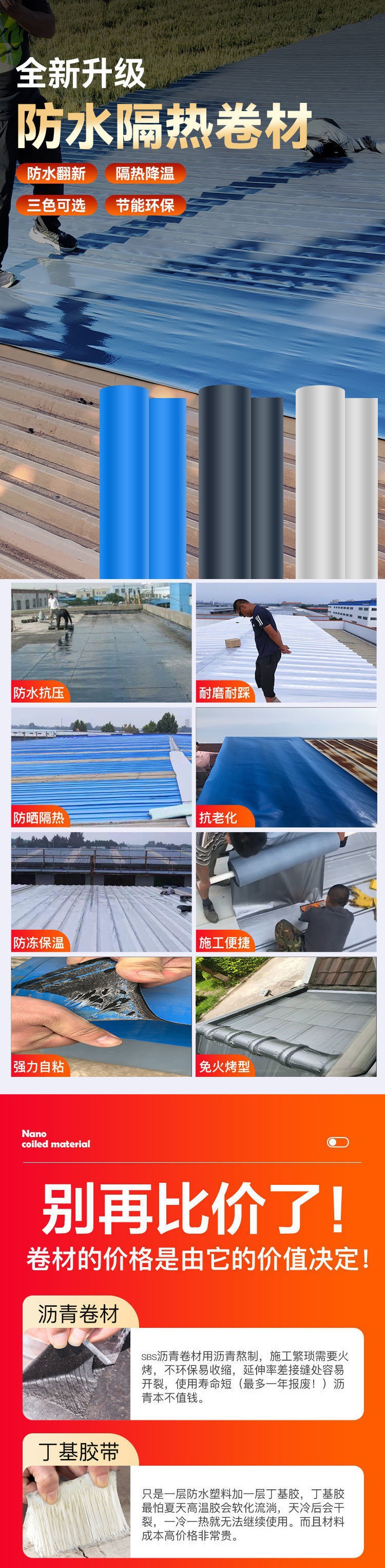 Miếng dán chống thấm mái màu ngói thép tự dính chất liệu cuộn chống rò rỉ chất liệu miếng dán dán mái nhà keo tấm sắt ngói amiang trạm độc lập