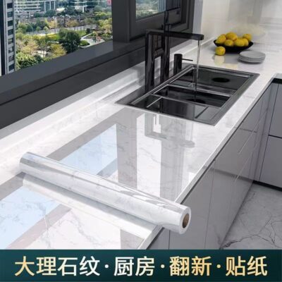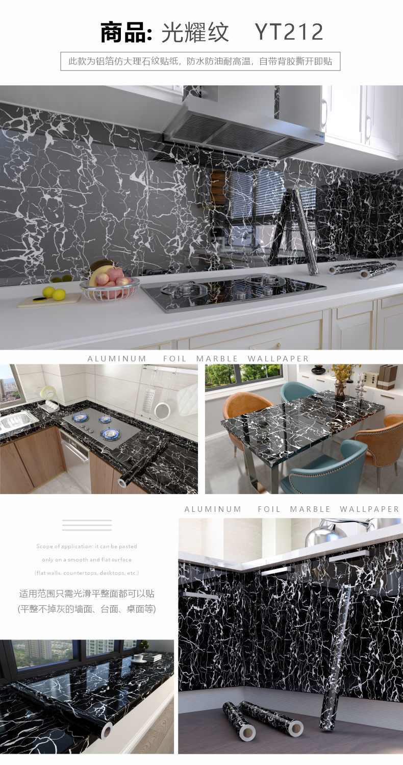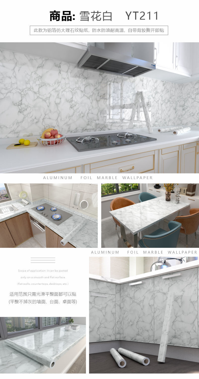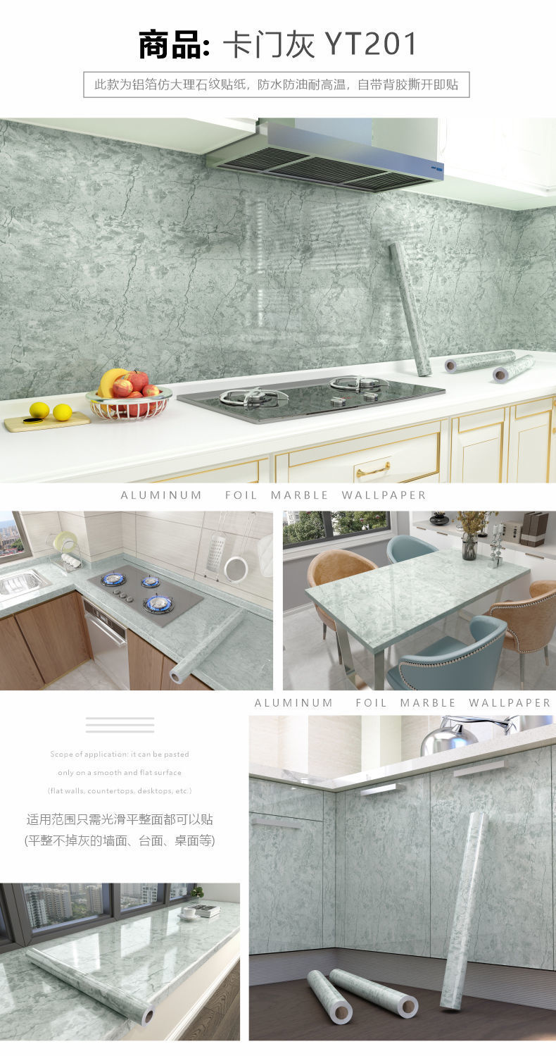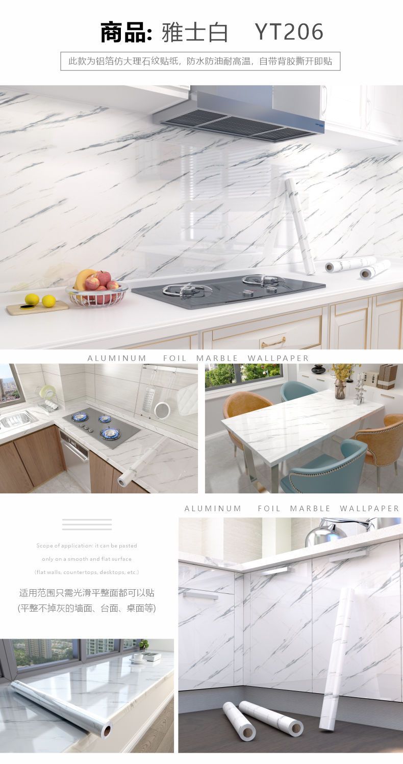 Miếng dán nhà bếp bằng đá cẩm thạch chống dầu miếng dán giấy nhôm chịu nhiệt độ cao giấy dán tường tự dính chống thấm tủ mặt bàn đồ nội thất đổi mới miếng dán