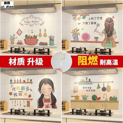 Miếng dán tường nhà bếp tự dính bán buôn miếng dán chống dầu bếp nhiều loại máy hút mùi chống bám bẩn trong suốt dày giấy dán tường chống thấm nước và chống ẩm