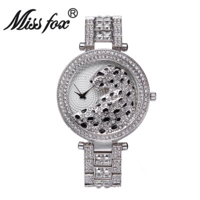Miss Fox thương mại nước ngoài bán chạy nhất da báo vành đai thép nạm kim cương cá nhân đồng hồ nữ thời trang đồng hồ thạch anh chống thấm nước cao cấp