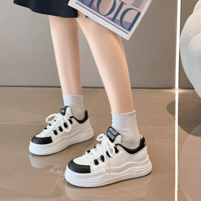 Miu Giày Trắng Nhỏ Giày Nữ Đế Dày Tất Cả Các Trận Đấu Thu Đông 2023 Mùa Hè Mới Da Giày Sneaker Nữ Hợp Thời Trang Giày