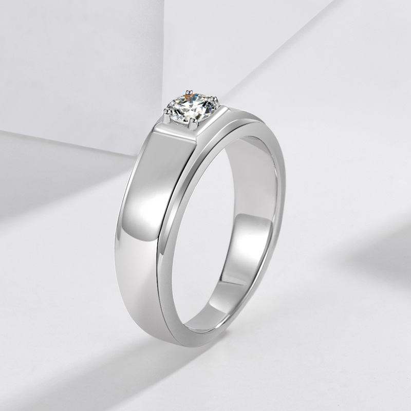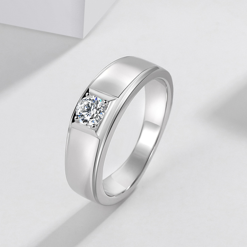 MJZ049 mới đơn giản nạm kim cương chắc chắn nhẫn nam nhỏ 30 điểm giả nhẫn kim cương đồng trắng trang sức nam
