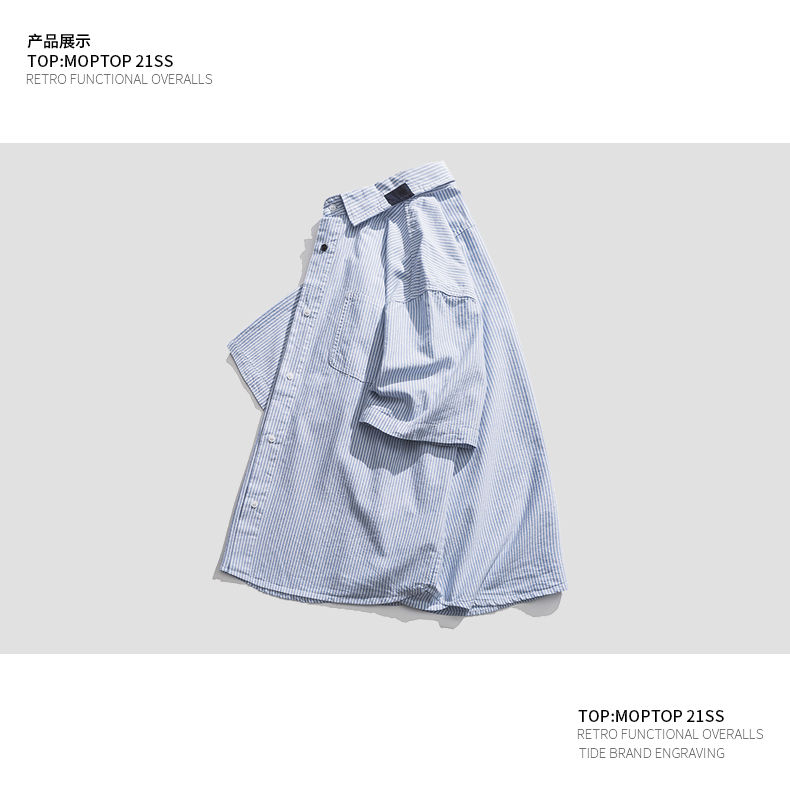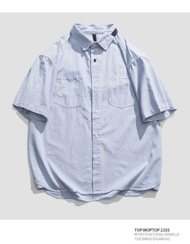 MMOPTOP mùa hè phóng khoáng phong cách Hồng Kông Văn học và nghệ thuật Nhật Bản cổ điển áo sơ mi ngắn tay nam giới thời trang áo sơ mi nam vải thô lười biếng