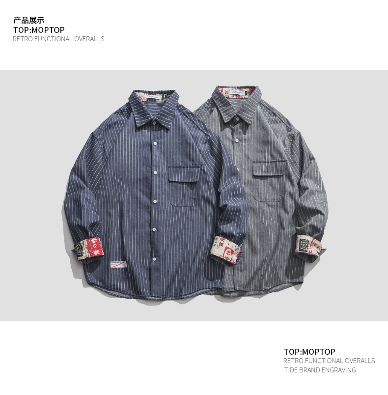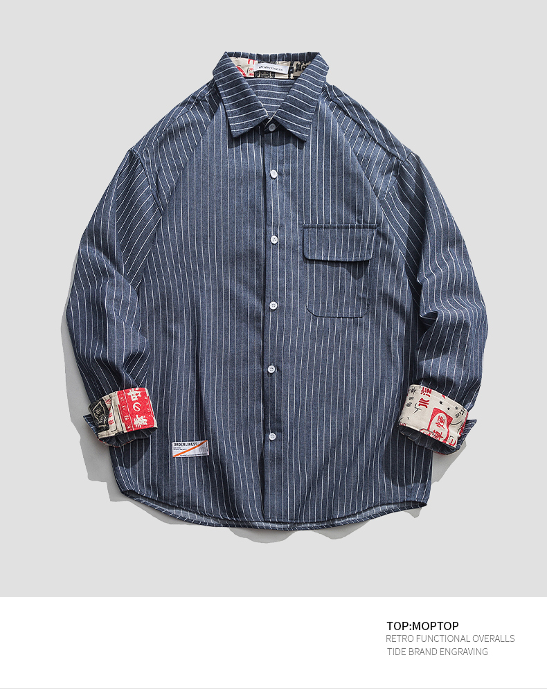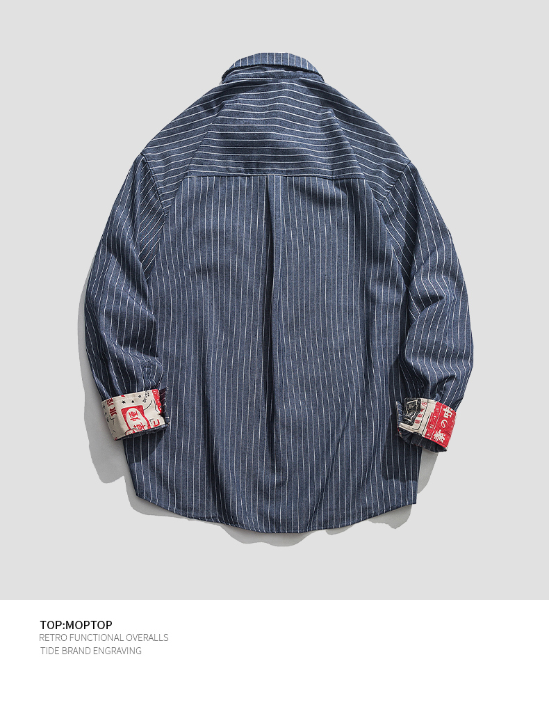 Mmoptop Nhật Bản dụng cụ retro áo sơ mi nam mùa hè mỏng phần của nam giới in triều thương hiệu áo khoác sọc áo sơ mi nam