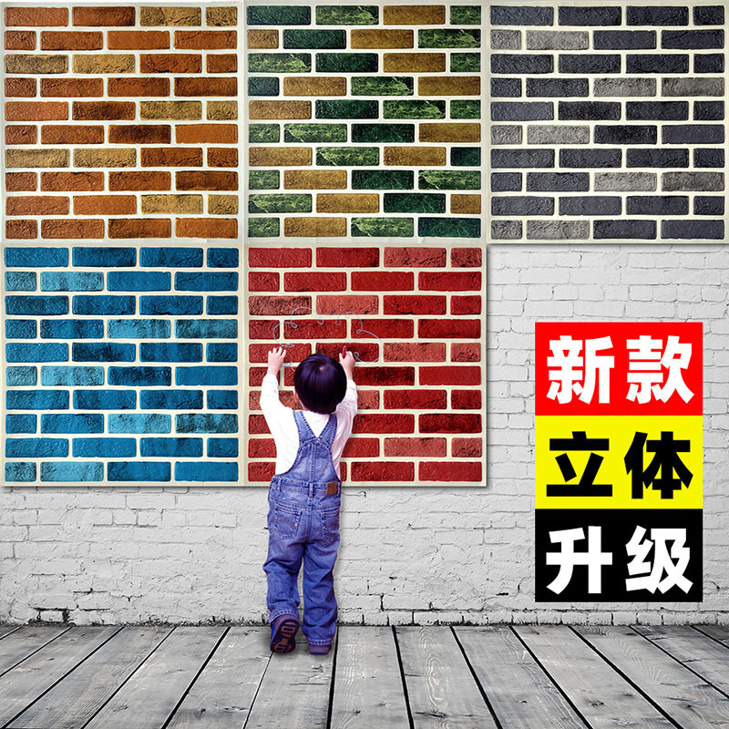 Mô hình gạch xốp cổ điển 3d dán tường ba chiều giấy dán tường tự dính bán buôn chống va chạm gói mềm trang trí giấy dán tường chống thấm mặt tiền cửa hàng