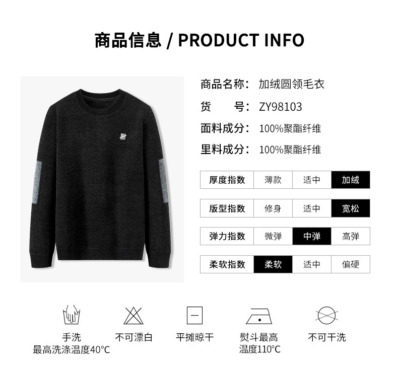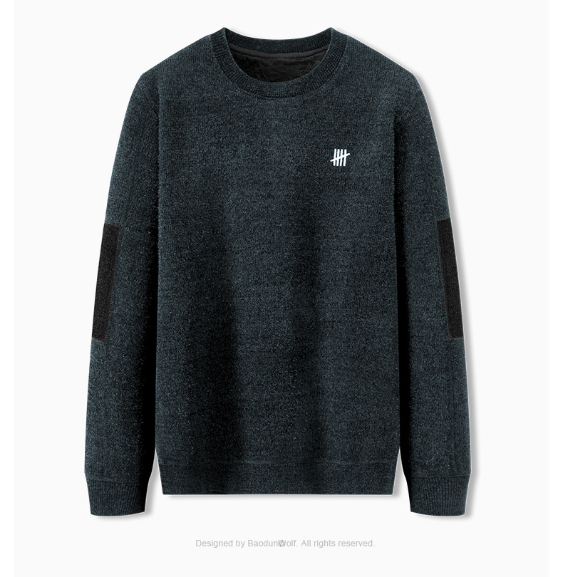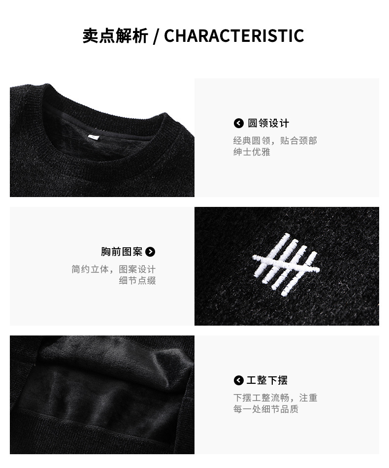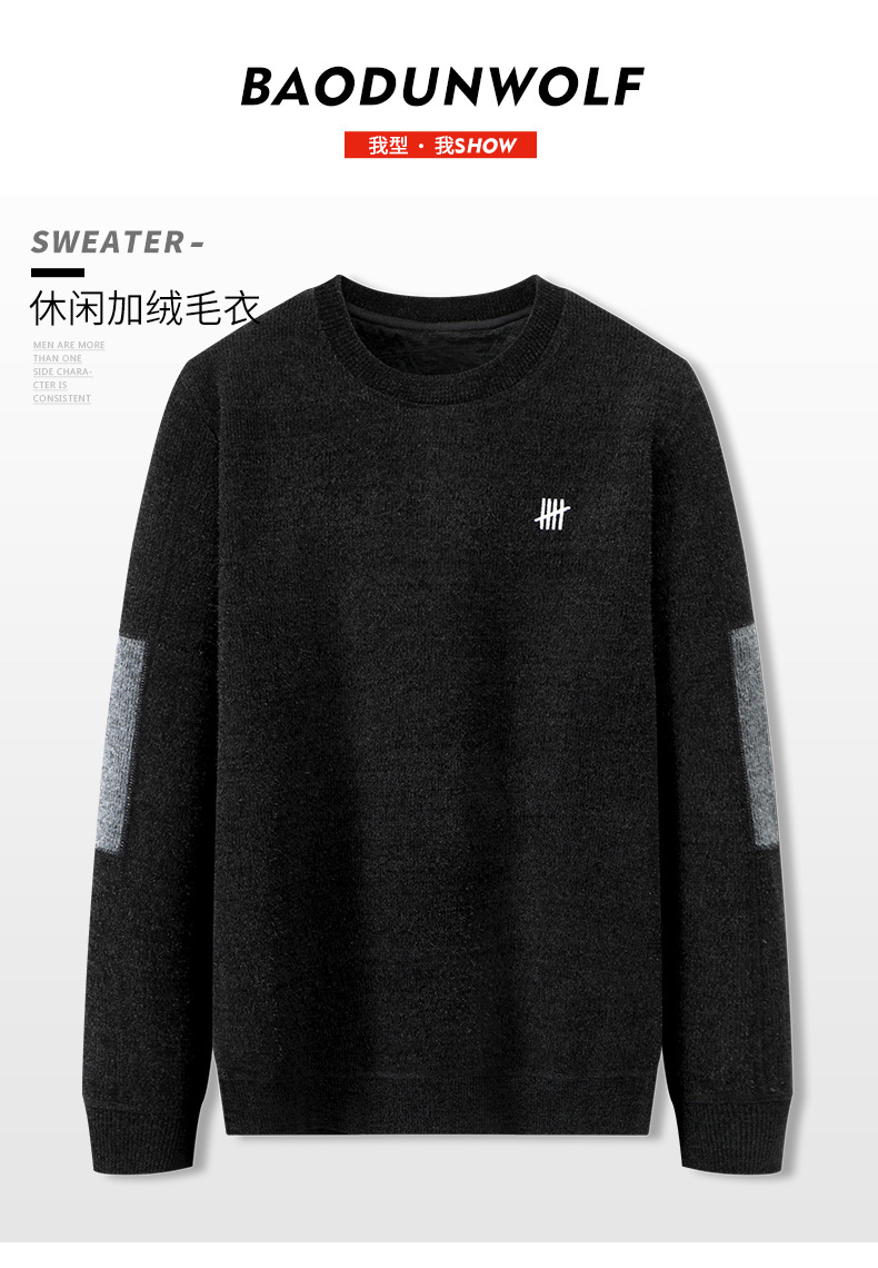 Mô hình mùa thu và mùa đông cộng với chất béo cộng với kích thước áo len dệt kim nam dày cộng với nhung áo len cổ tròn áo len chui đầu chất béo đáy áo sơ mi