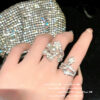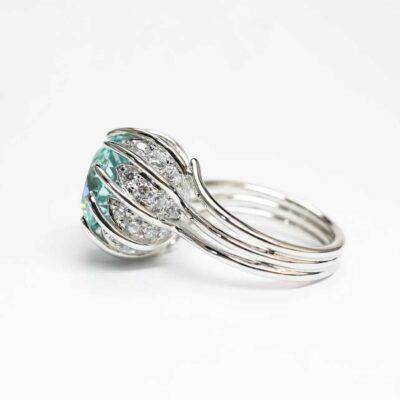 Mô phỏng cung cấp trực tiếp Nhẫn kim cương xanh lục Paraiba pt950 tám trái tim và tám mũi tên nhẫn mở kho báu màu kim cương carbon cao