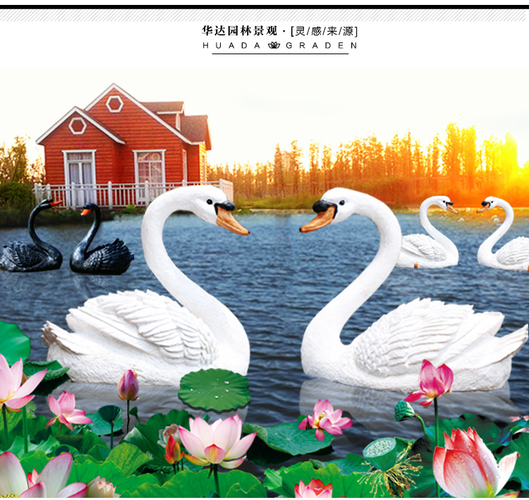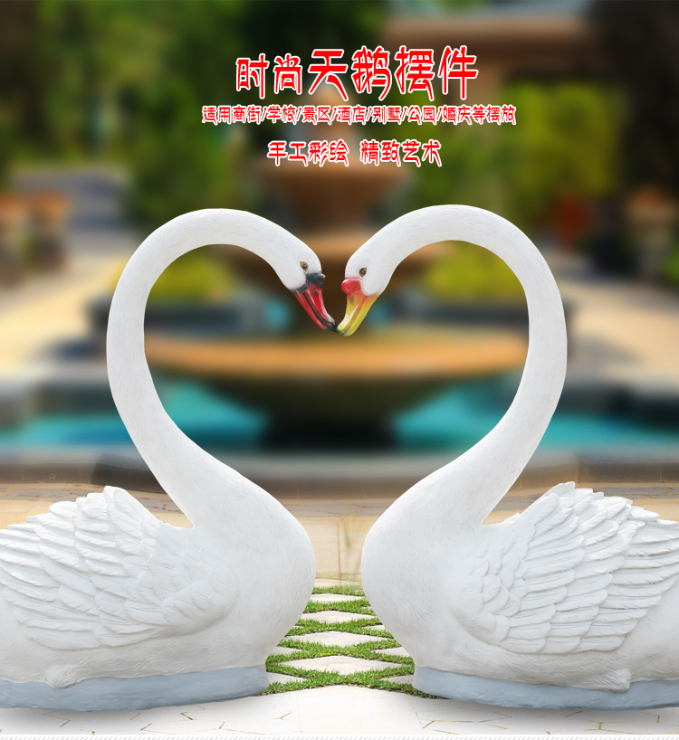 Mô phỏng đồ trang trí thiên nga ngoài trời sợi thủy tinh gia cố nhựa quy mô lớn điêu khắc sân vườn cảnh quan khách sạn bên hồ bơi trang trí đạo cụ đám cưới