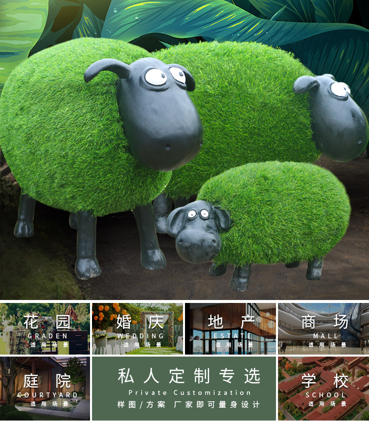 Mô phỏng ngoài trời màu xanh lá cây nhà máy cỏ cừu sợi thủy tinh gia cố đồ trang trí nhựa cừu điêu khắc vườn rừng cảnh quan bãi cỏ trang trí mẫu giáo