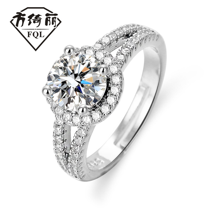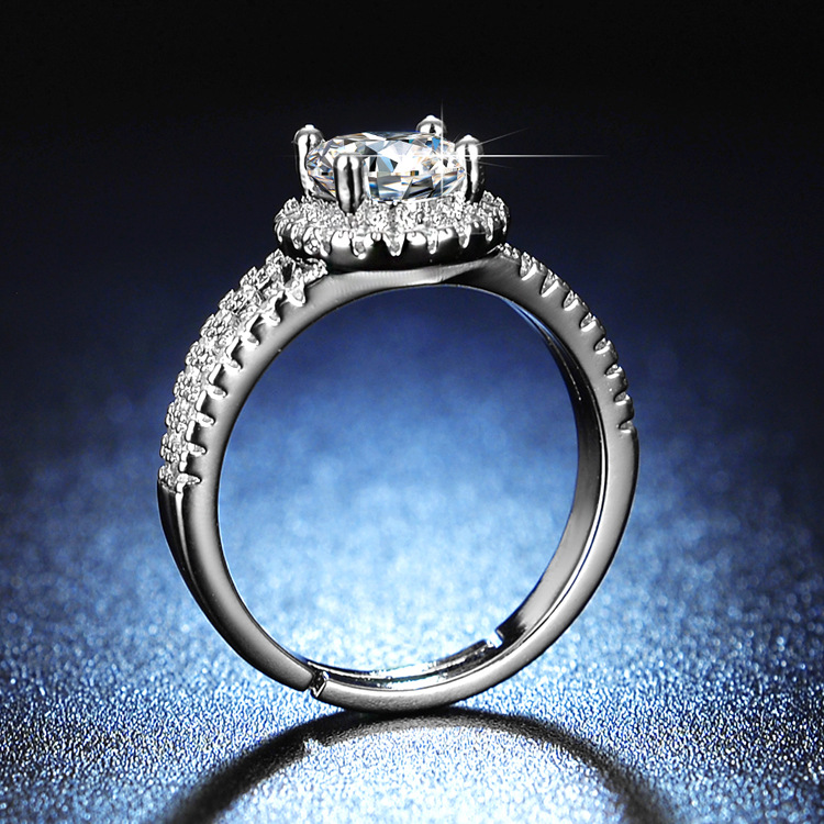 Mô phỏng túi tròn moissanite nhẫn 1 carat nữ đôi hàng kim cương hoa văn móng tay nhẫn Douyin Kuaishou phát sóng trực tiếp cung cấp bán buôn