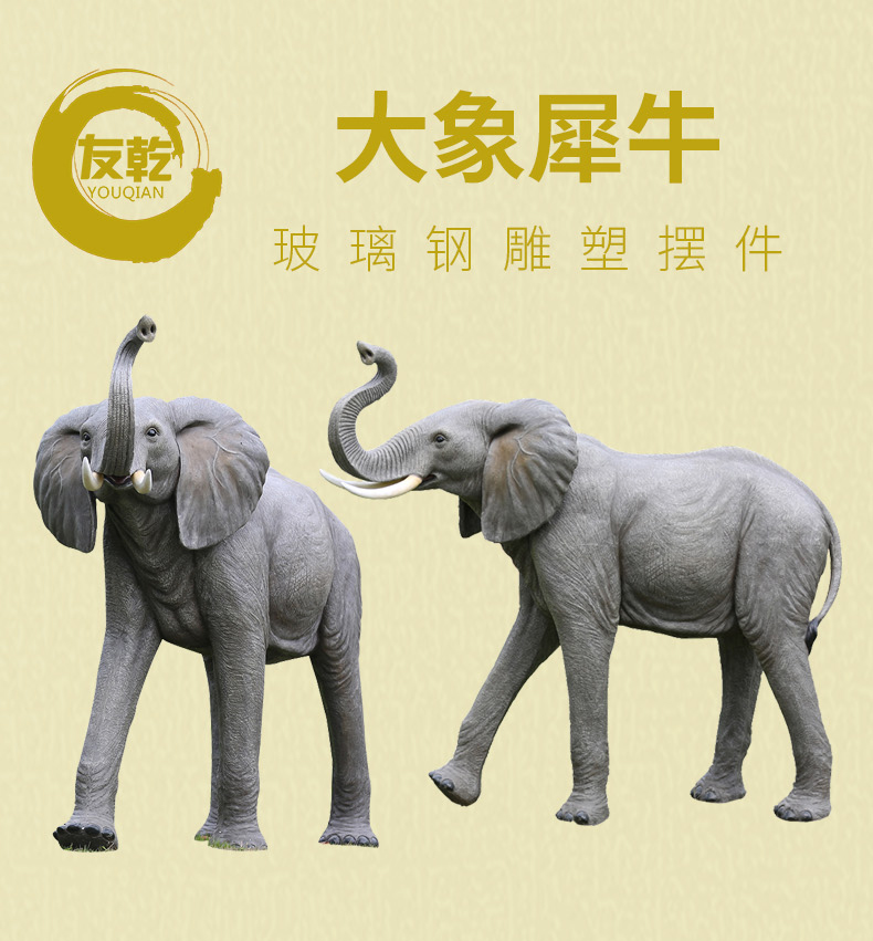 Mô phỏng voi tê giác sợi thủy tinh lớn động vật điêu khắc ngoài trời sân vườn cảnh quan sân trong đồ trang trí sàn