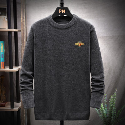 Mỡ Soái Ca Mùa Thu Nam Áo Len Dệt Kim Cổ Tròn Mỏng Trung Niên Đáy Áo Len Bố Áo Thu Voan Top