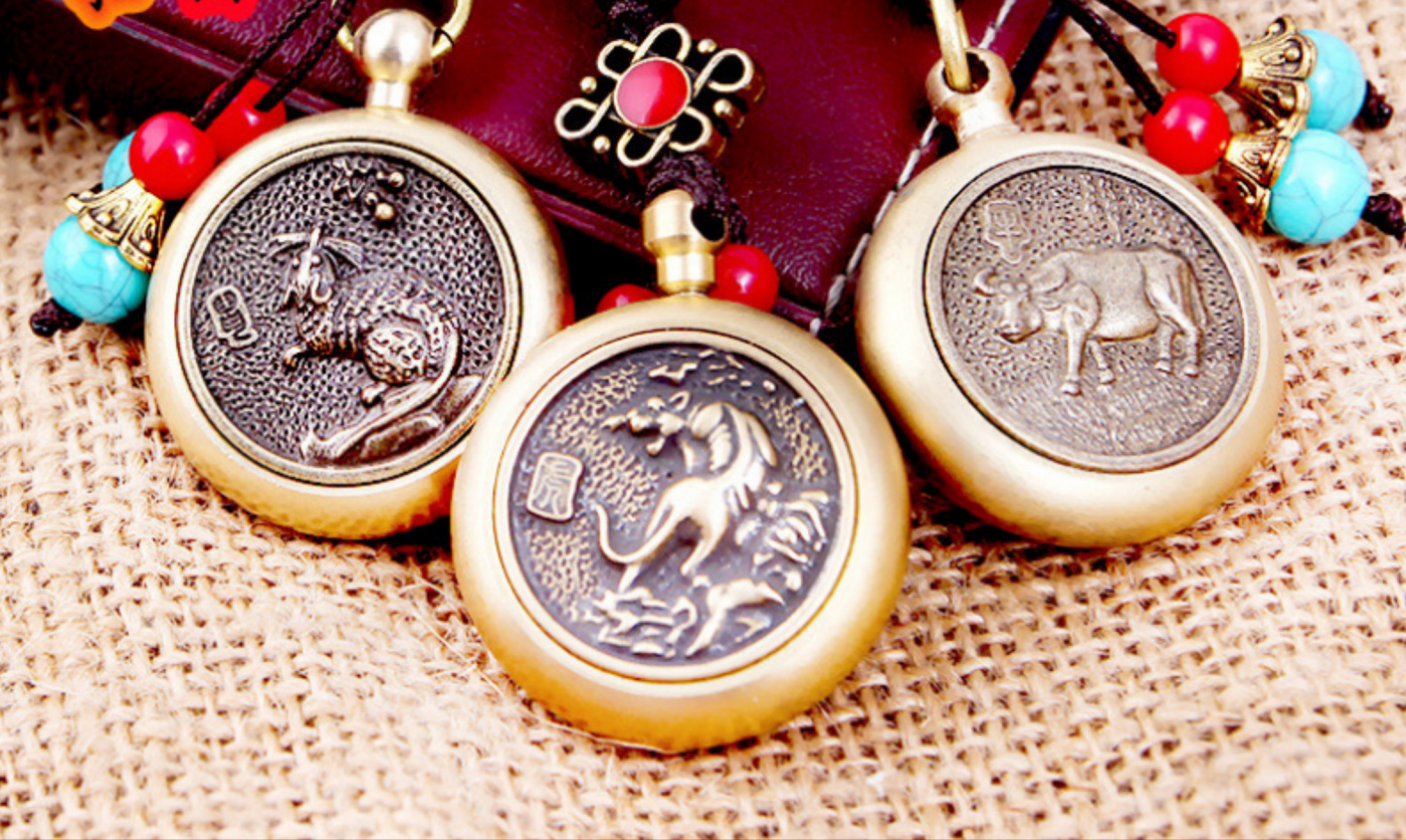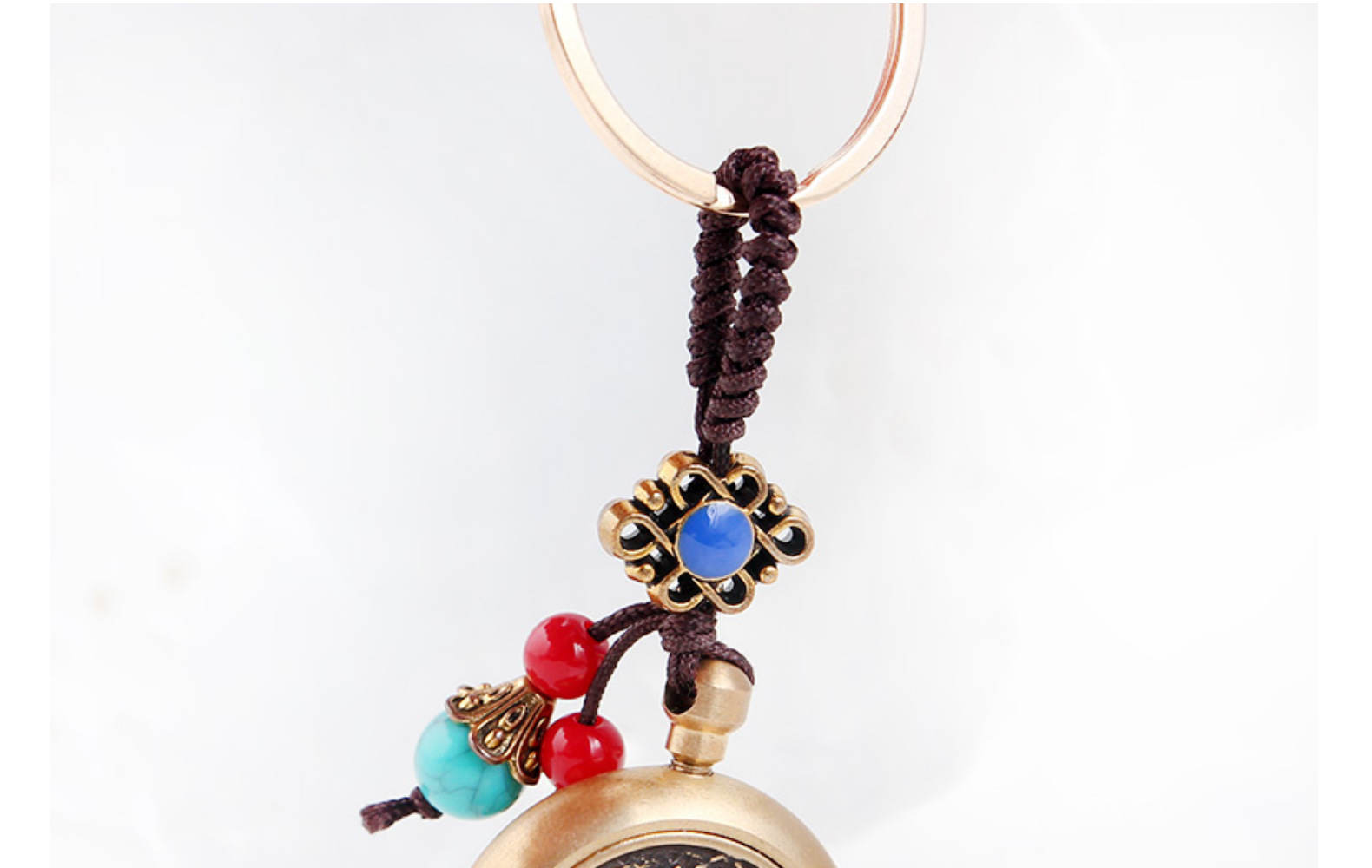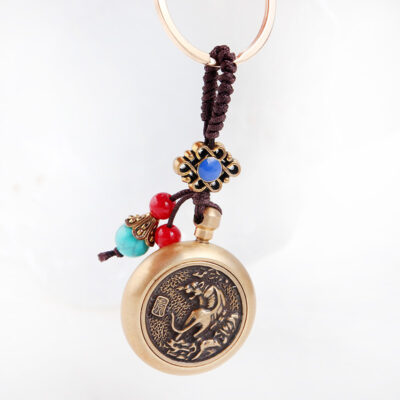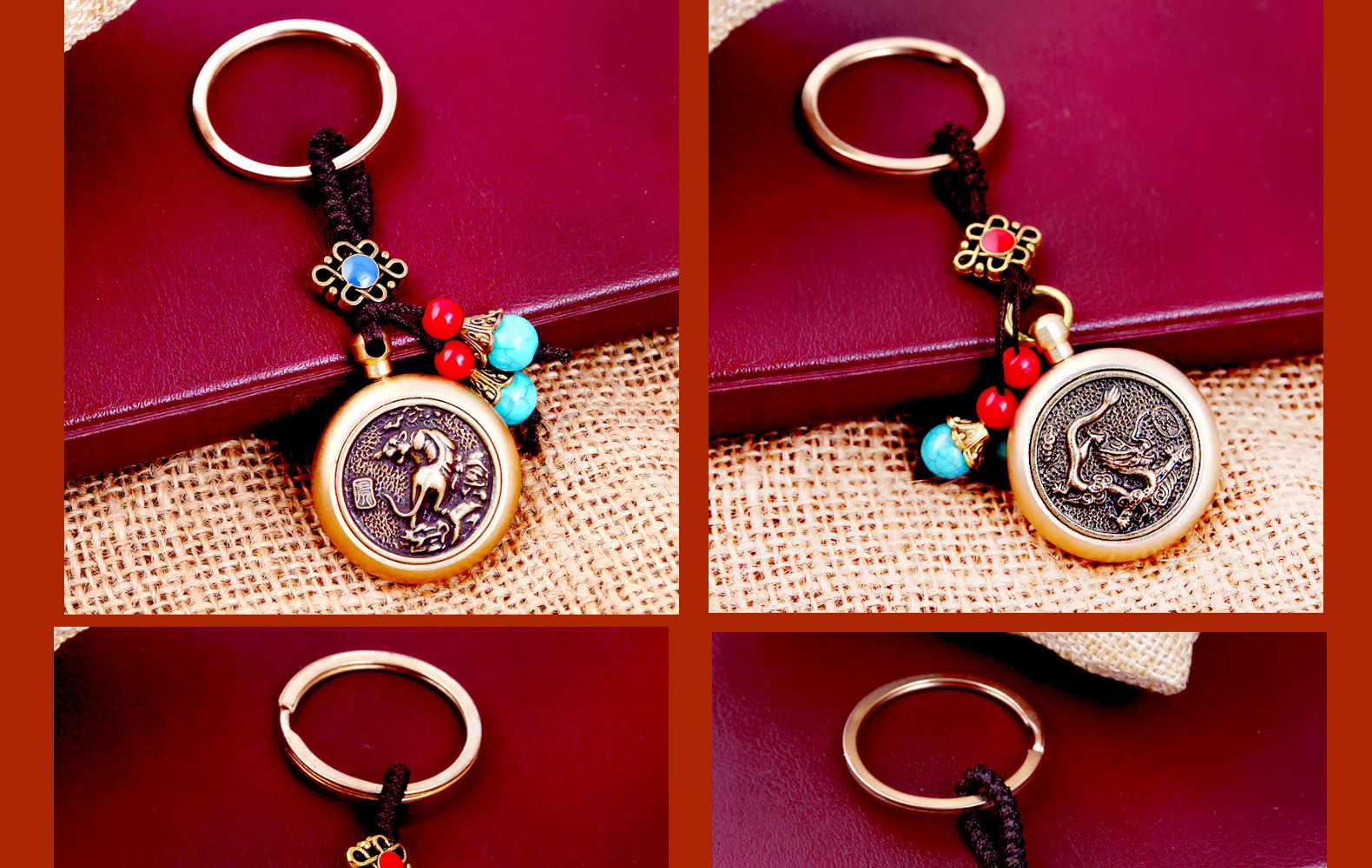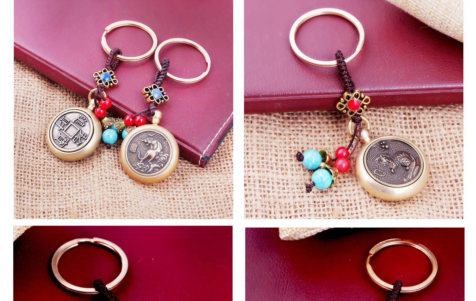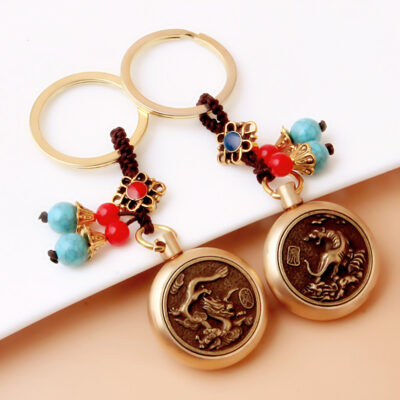 Móc chìa khóa bằng đồng chuyển tiền mười hai cung hoàng đạo móc chìa khóa xoay kho báu may mắn hạt xanh ô tô mặt dây chuyền nữ trang