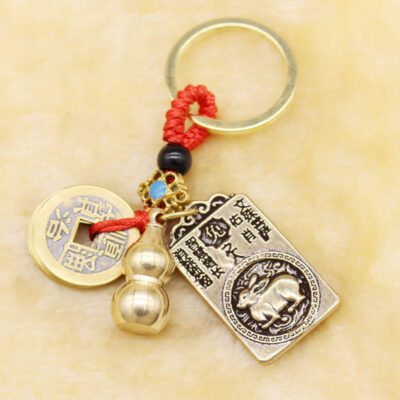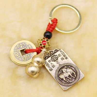 Móc chìa khóa bằng đồng thật bằng đồng bầu bí mười hai cung hoàng đạo vị thánh hộ mệnh bằng đồng thật ngũ hoàng tiền tám vị thánh hộ mệnh mở trang sức