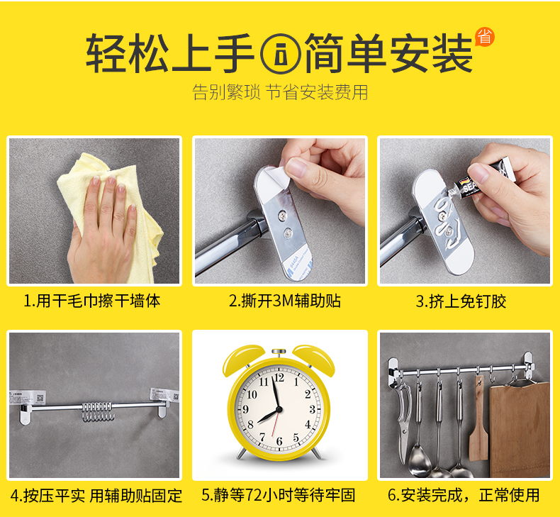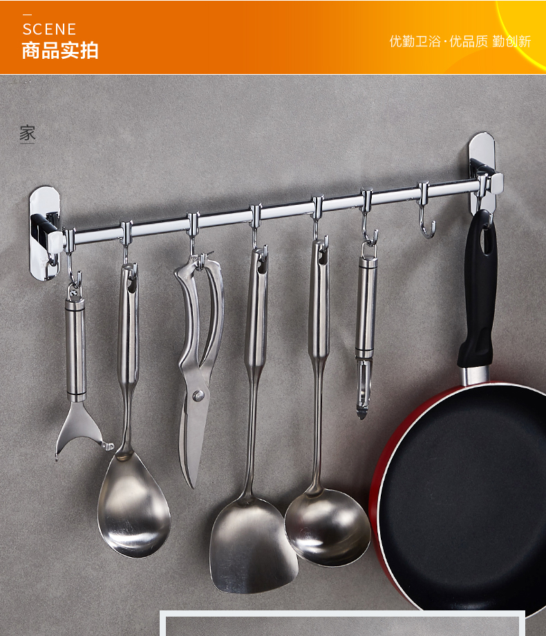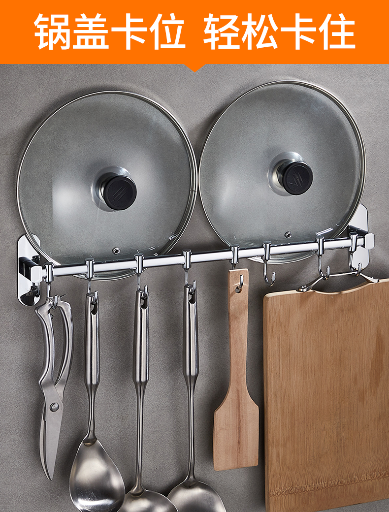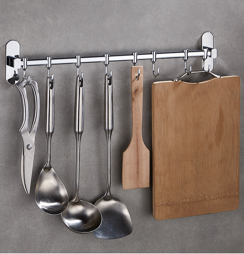 Móc thép không gỉ giá bếp treo tường giá móc treo miễn phí đục lỗ đồ dùng nhà bếp