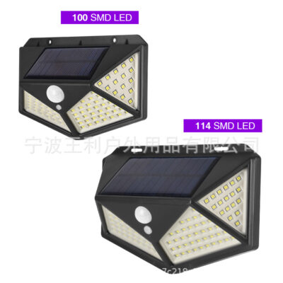 Mới 100LED năng lượng mặt trời đèn tường sạc 4 mặt phát sáng cơ thể con người đèn cảm ứng chiếu sáng ngoài trời đèn sân vườn hiện đại
