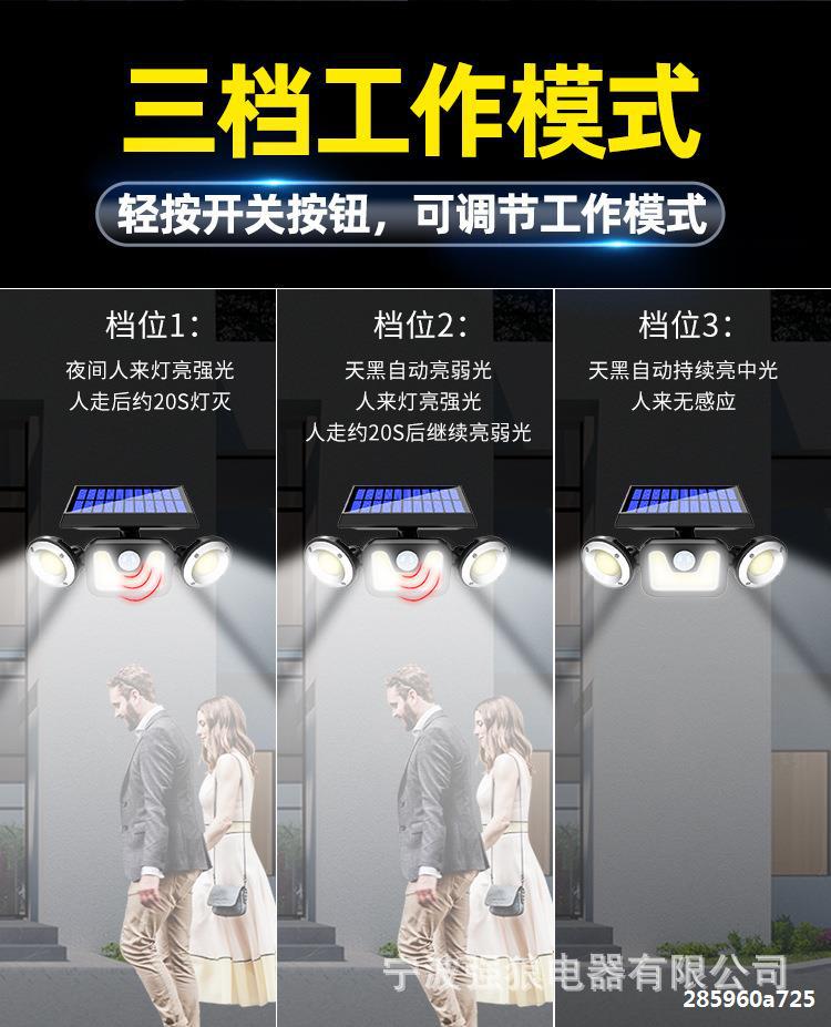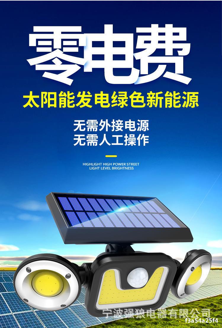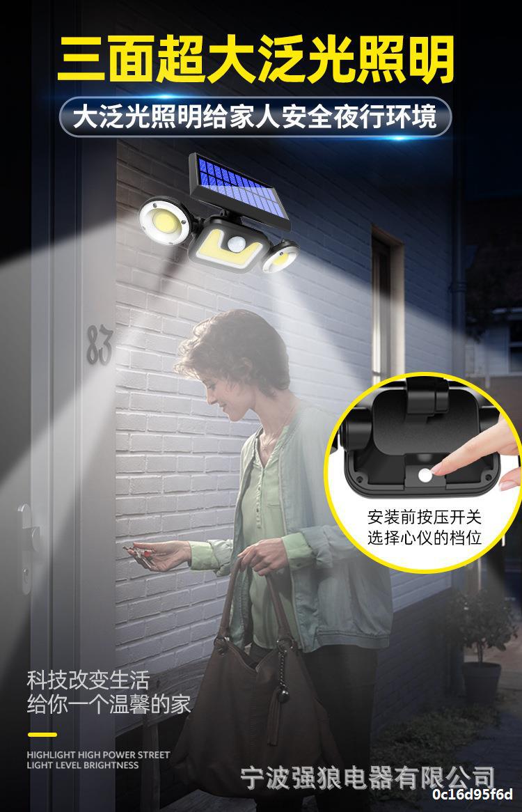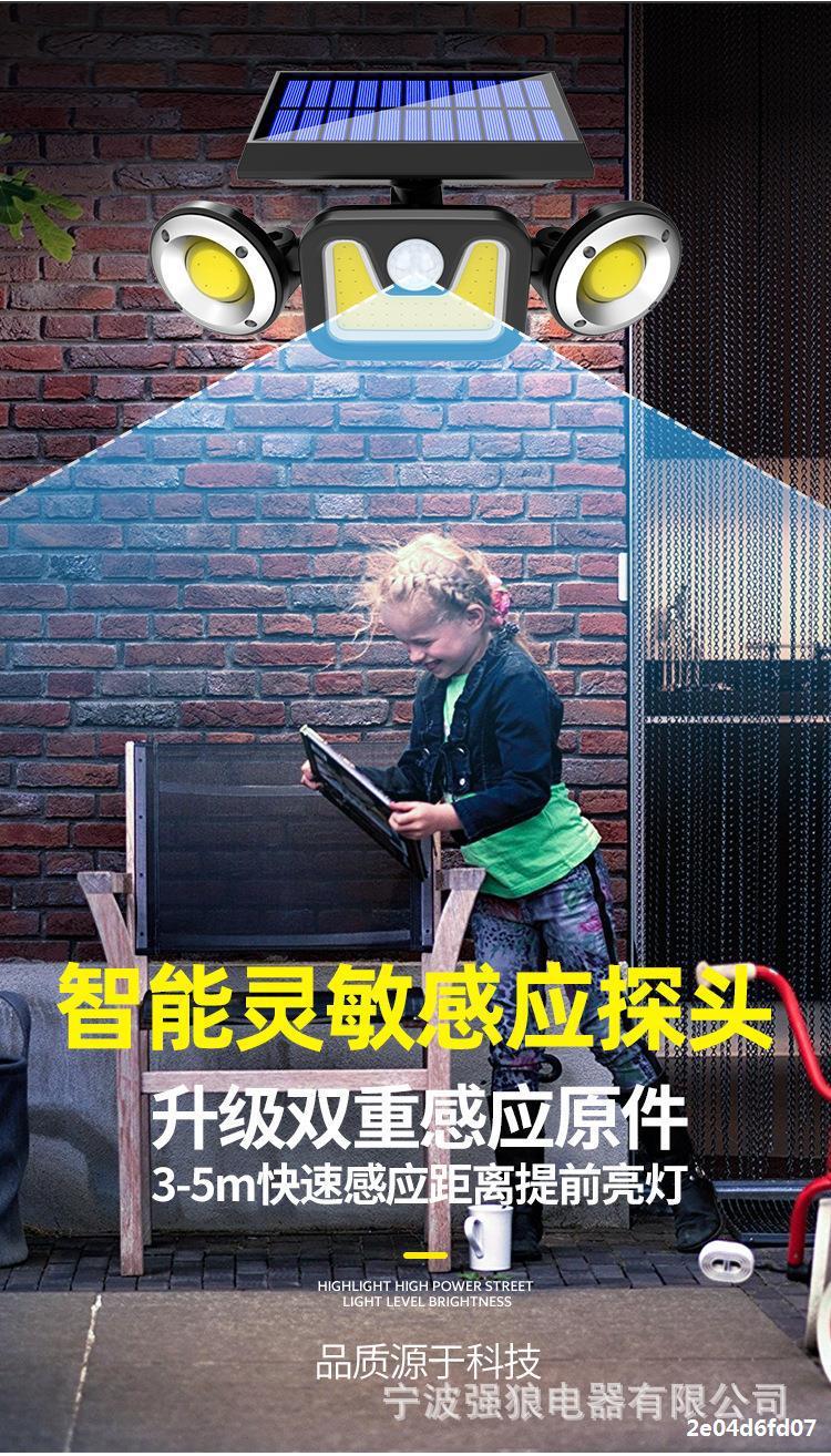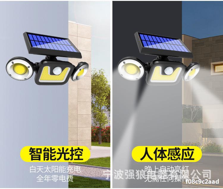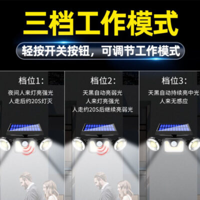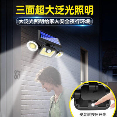 Mới 2020 Đèn LED Năng Lượng Mặt Trời Đèn Tường 3 Đầu Xoay Ngoài Trời Chống Thấm Nước Cơ Thể Con Người Cảm Ứng Đèn Đường Sân Vườn