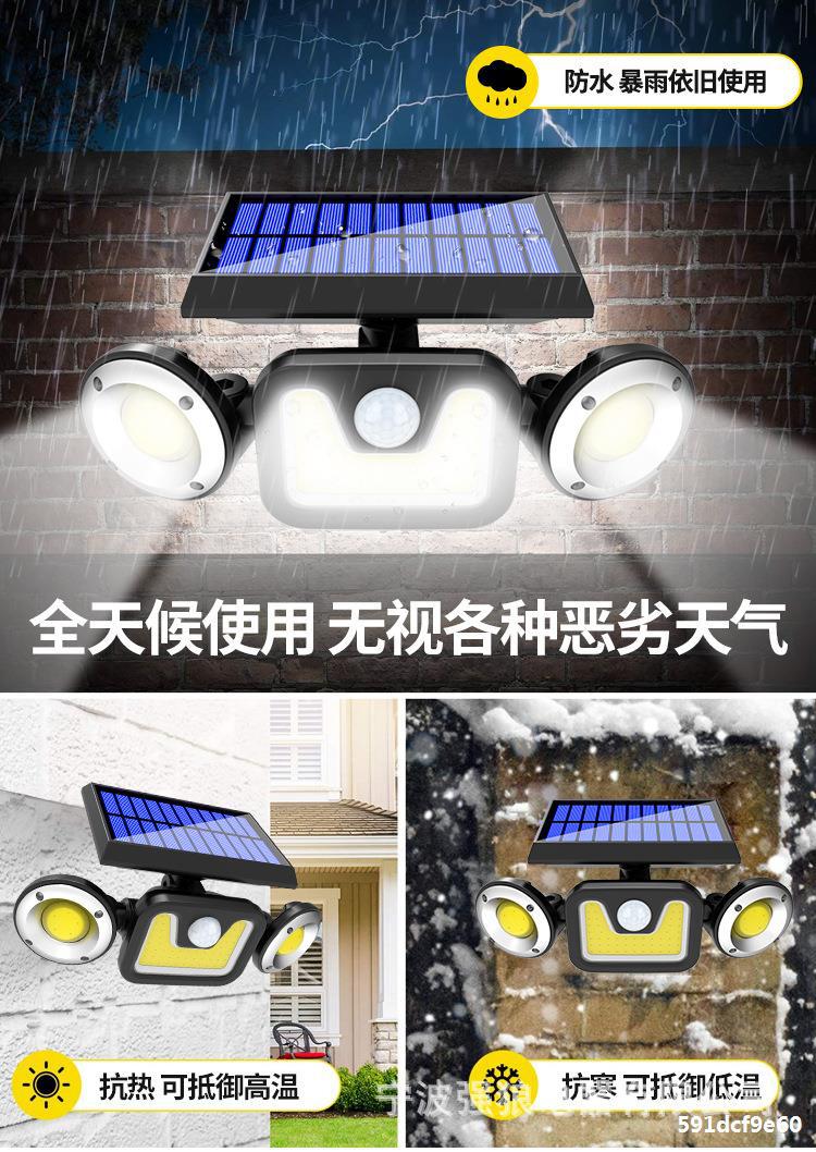 Mới 2020 Đèn LED Năng Lượng Mặt Trời Đèn Tường 3 Đầu Xoay Ngoài Trời Chống Thấm Nước Cơ Thể Con Người Cảm Ứng Đèn Đường Sân Vườn