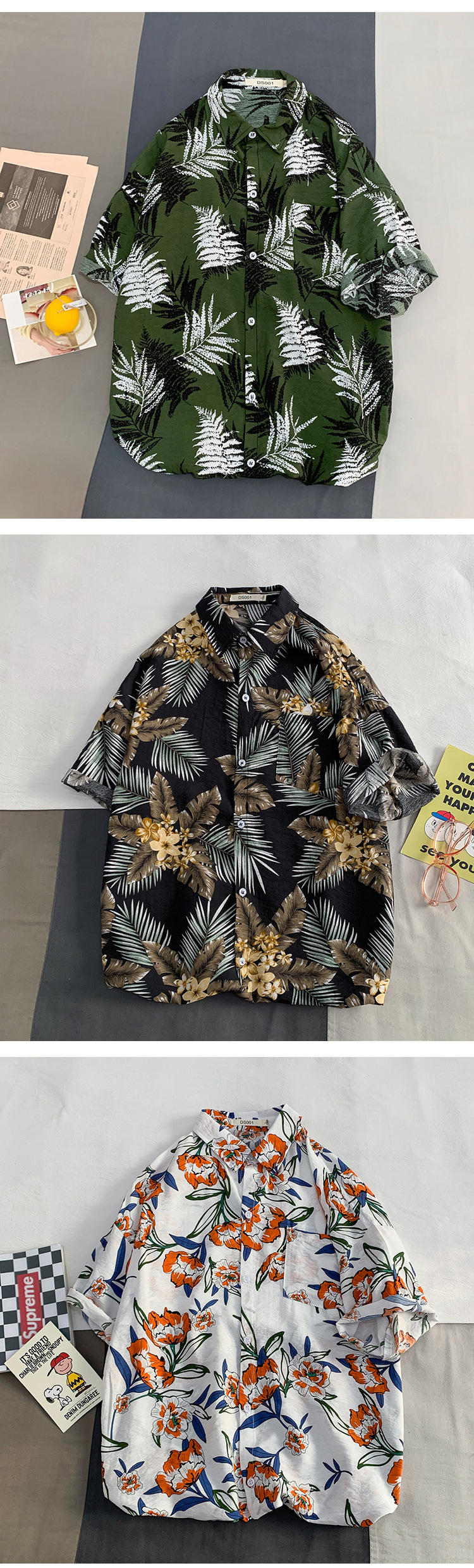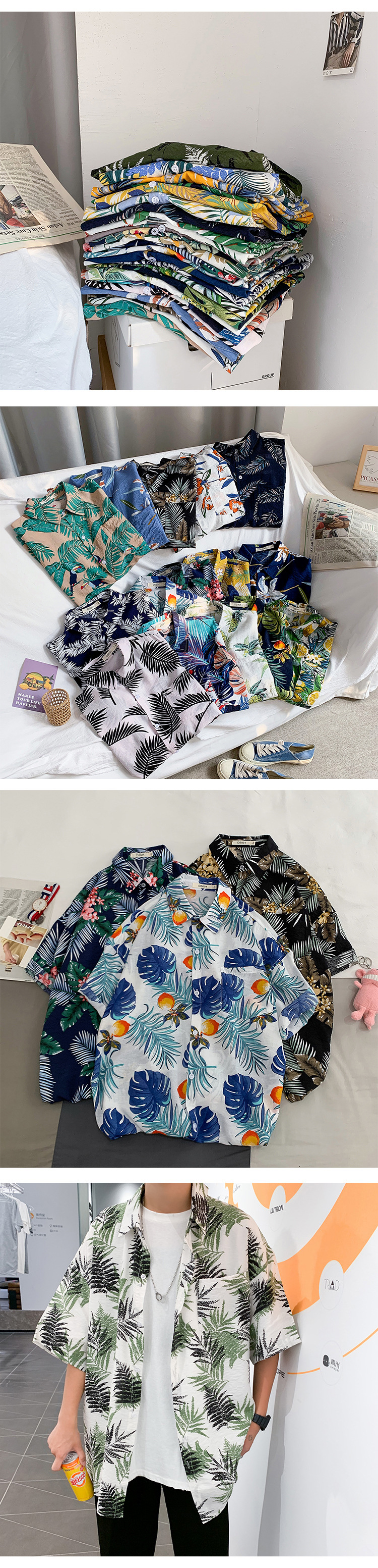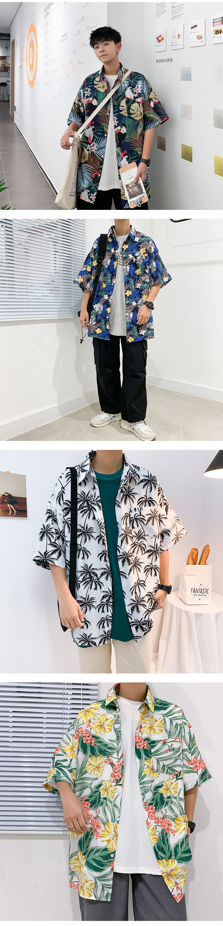 Mới Bãi Biển Nam Áo Sơ Mi Lướt Dừa Áo Sơ Mi Hoa Tay Ngắn Vải Lanh Cotton Đi Biển Hawaii Rời Áo Sơ Mi In Hình