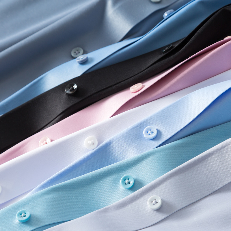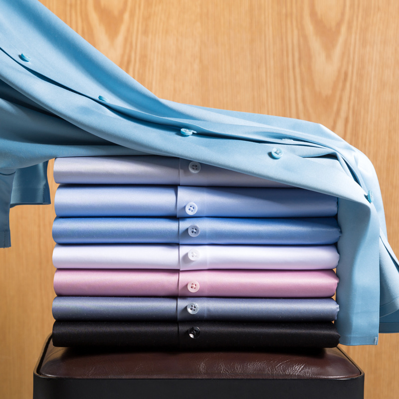 Mới cao cấp ánh sáng sang trọng lụa dâu tằm sơ mi nam ngắn tay liền mạch co giãn bốn mặt băng lụa công sở áo sơ mi trắng nam công sở