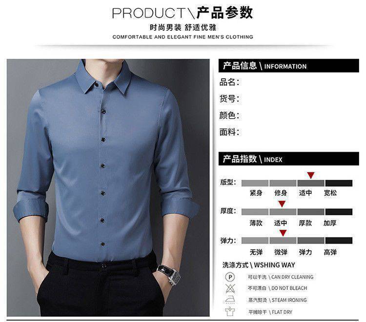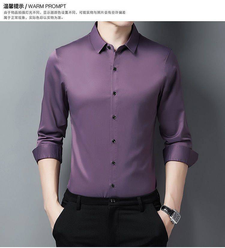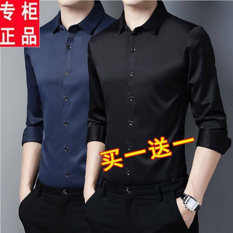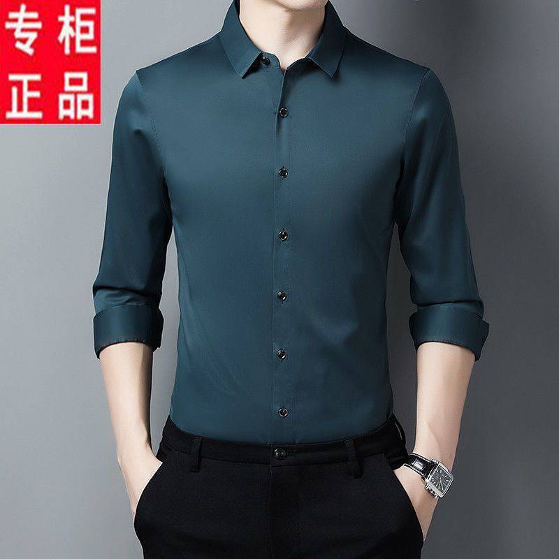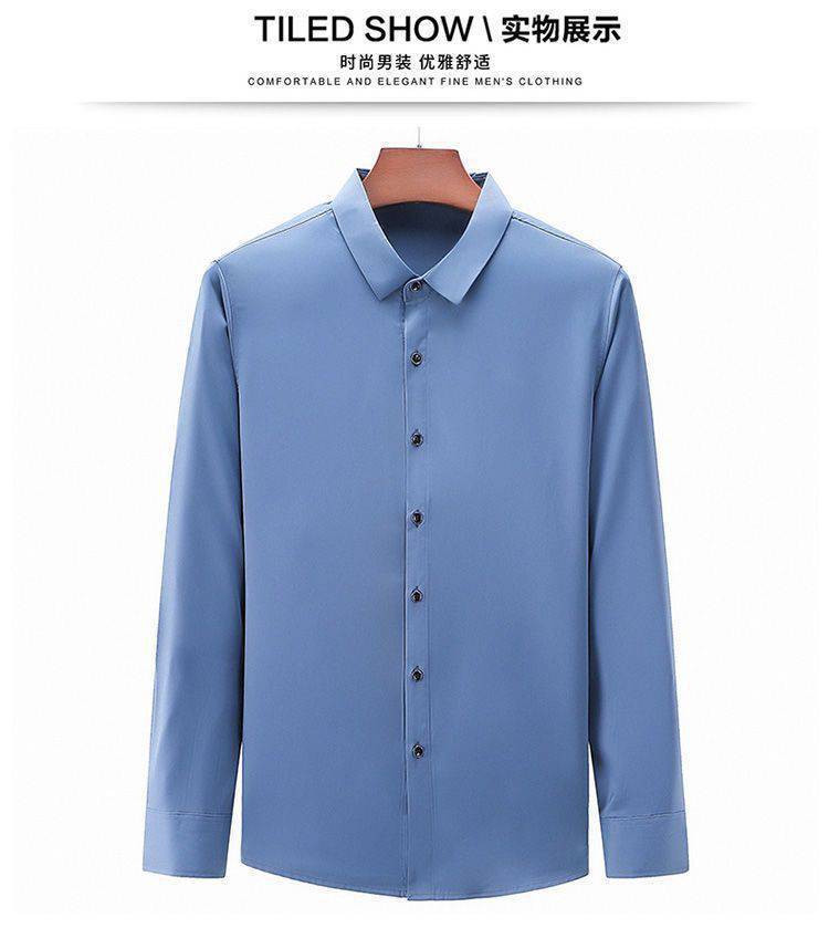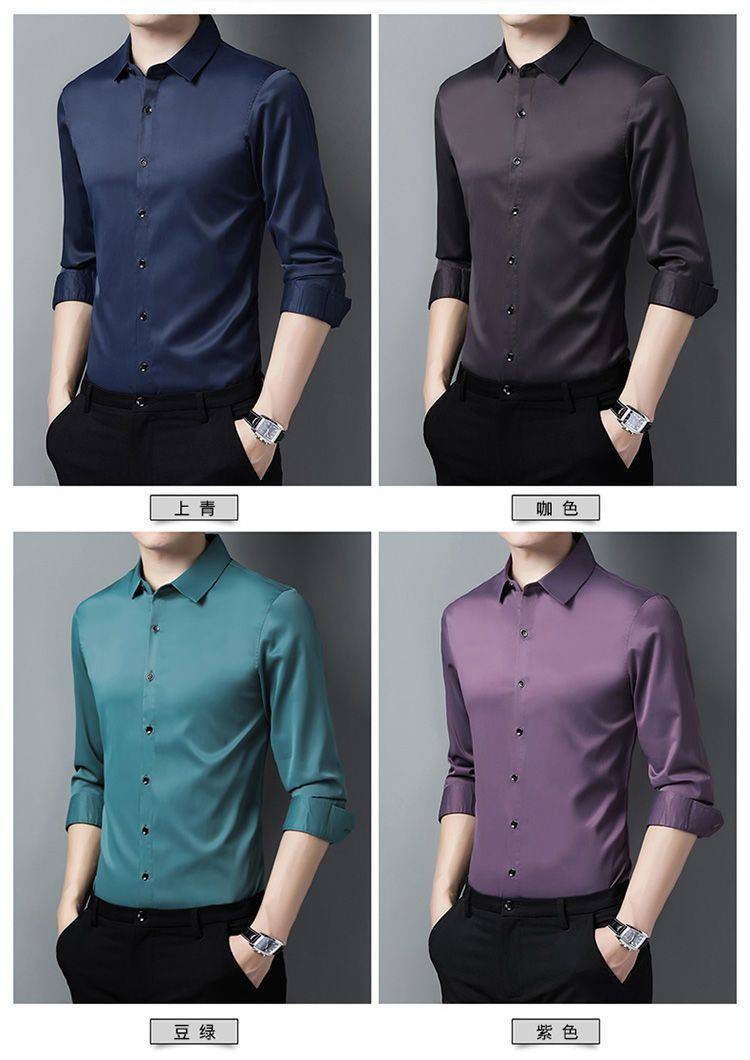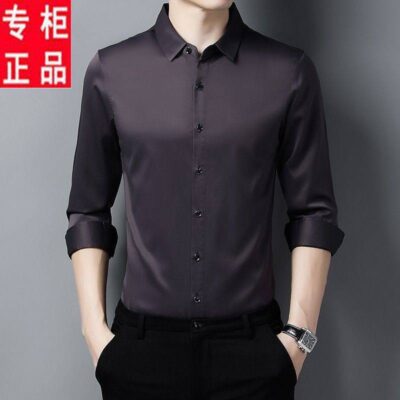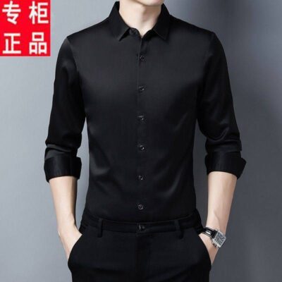 Mới cao cấp lụa băng dài tay áo sơ mi nam màu trơn áo sơ mi mỏng mùa xuân và mùa thu trung niên thường quần áo cỡ lớn inch