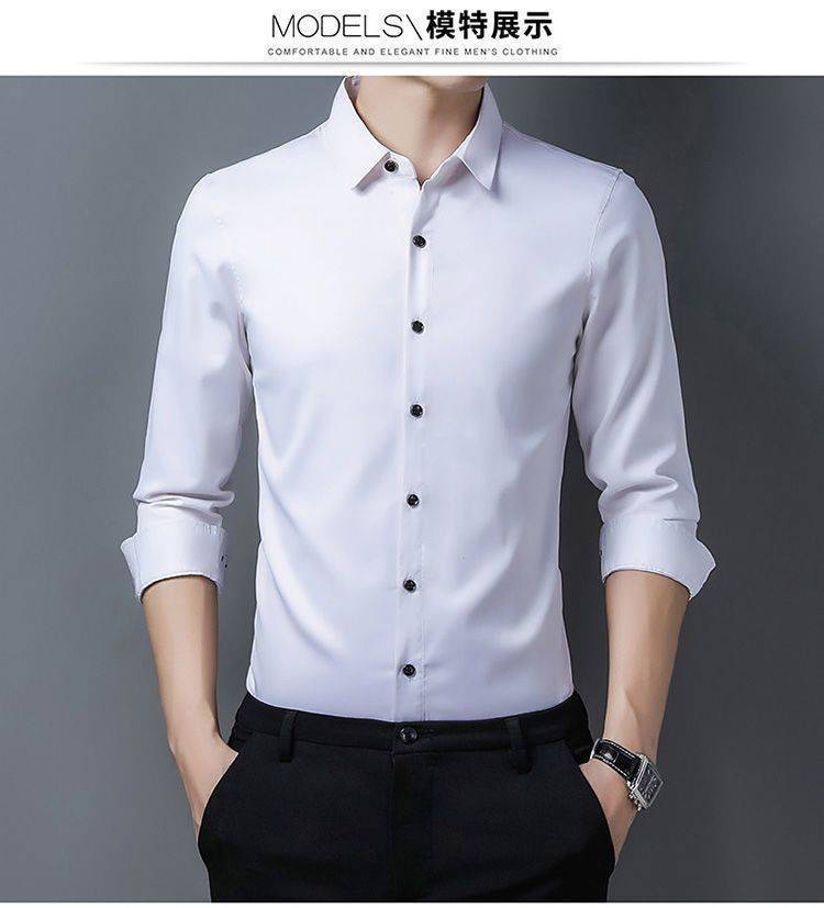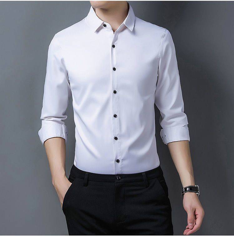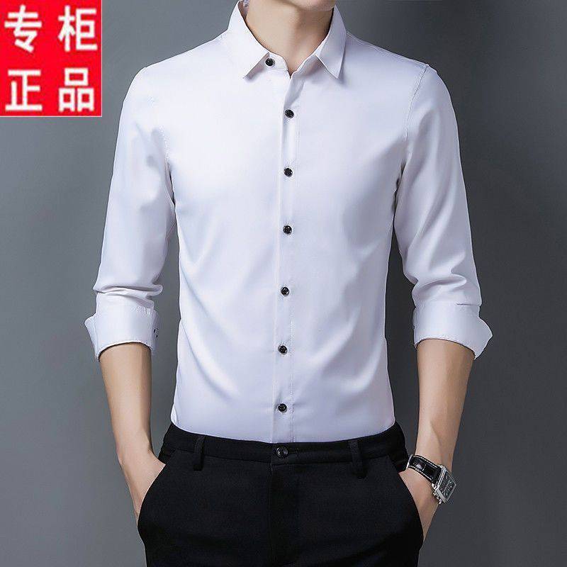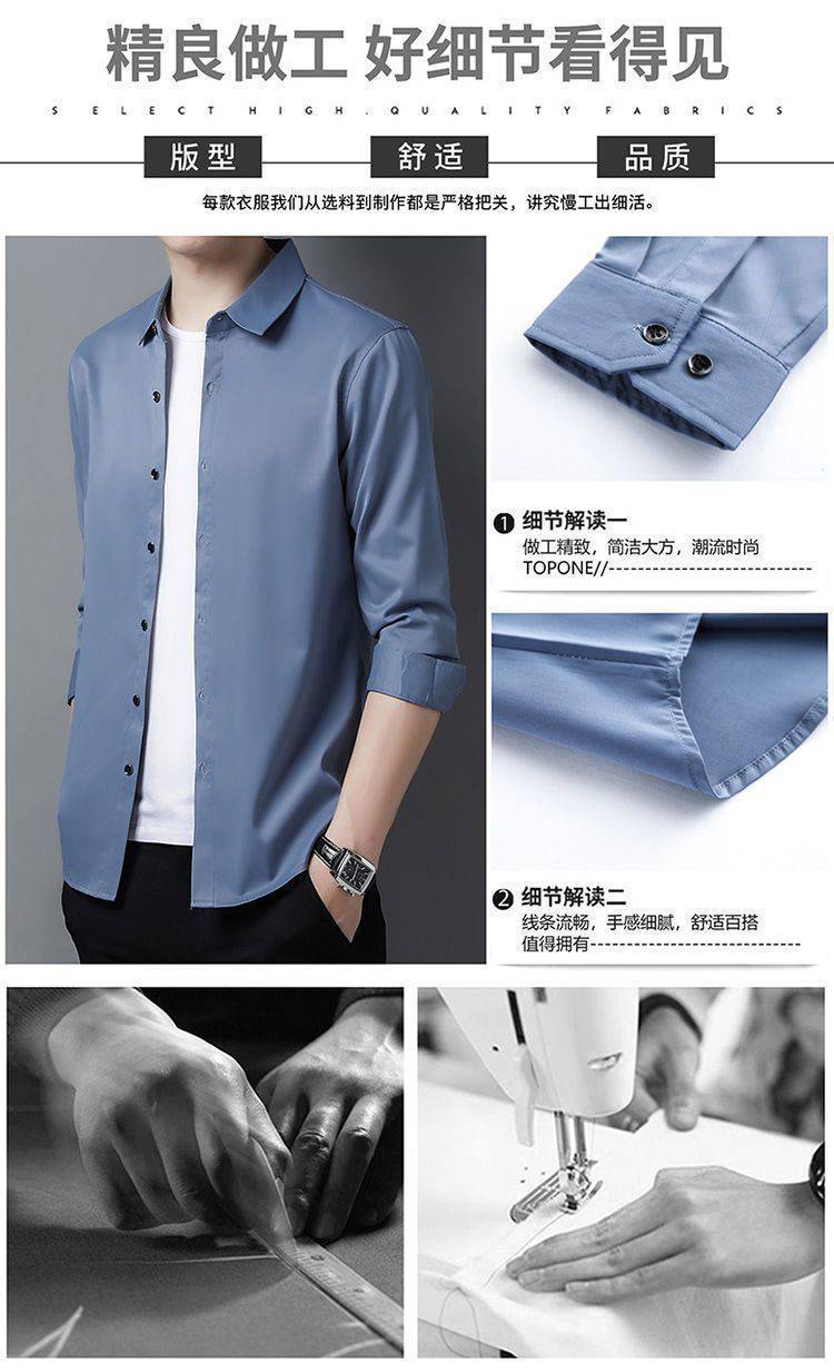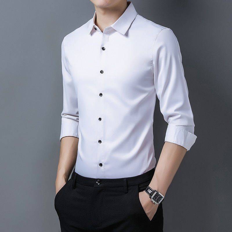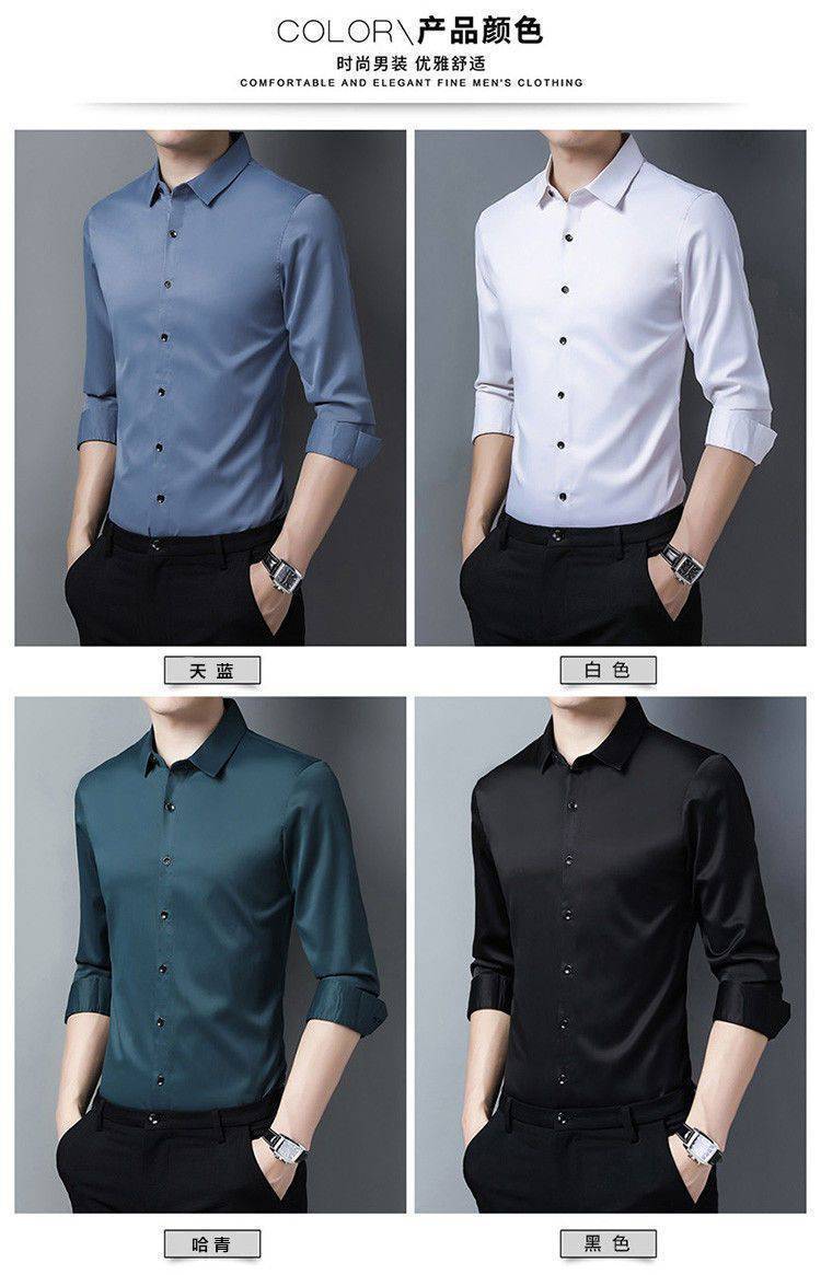 Mới cao cấp lụa băng dài tay áo sơ mi nam màu trơn áo sơ mi mỏng mùa xuân và mùa thu trung niên thường quần áo cỡ lớn inch