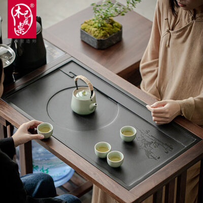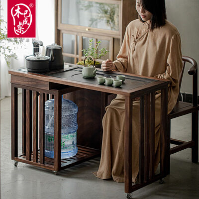 Mới của Trung Quốc phong cách óc chó gỗ chắc chắn bàn trà ghế kết hợp nhà ban công kung fu bàn trà nhỏ bộ ấm trà giỏ hàng