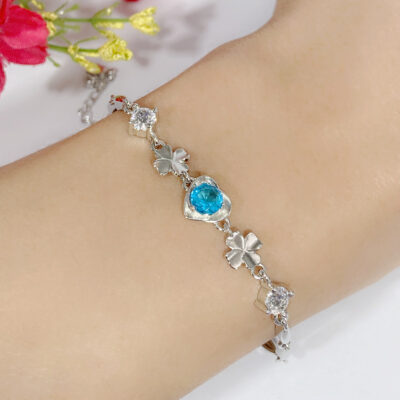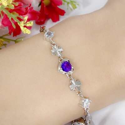 Mới Đào Trái Tim Hình Trái Tim Vòng Tay Thạch Anh Tím Cỏ Bốn Lá Mạ Bạch Kim Biển Topaz Xanh Vòng Tay Hoa Quà Tặng