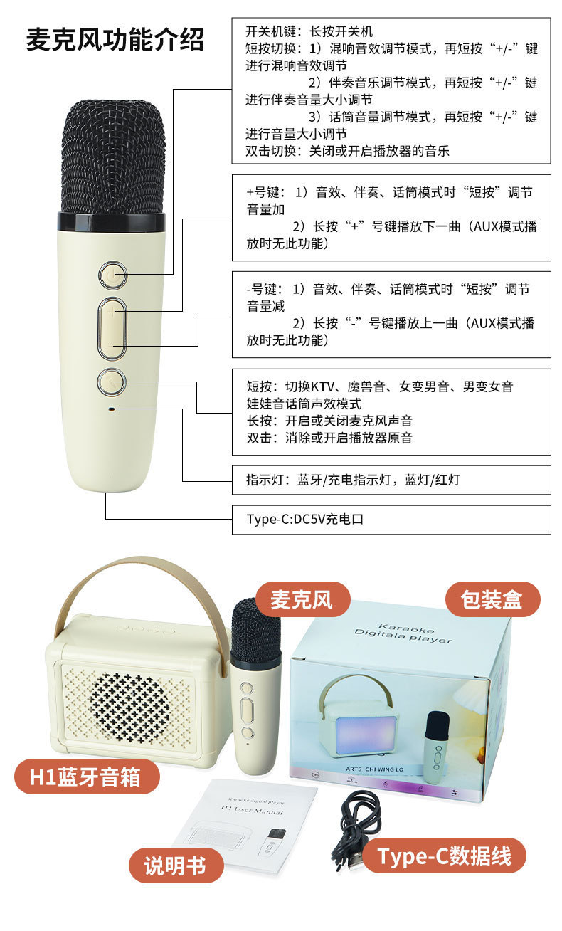 Mới H1 Loa Bluetooth Micro Bộ Micro Không Dây Nhà KTV Mini Thẻ Âm Thanh Quà Tặng